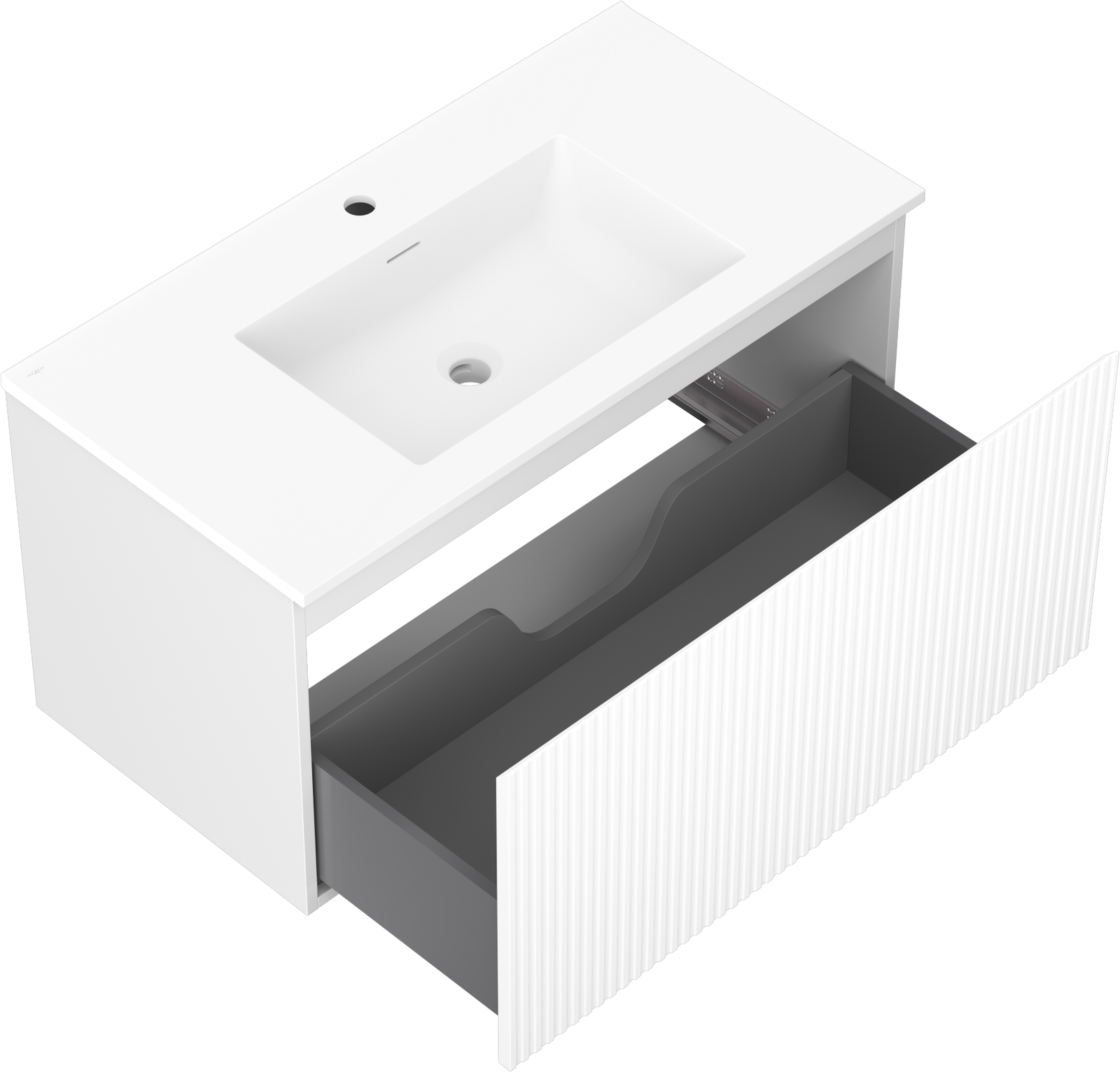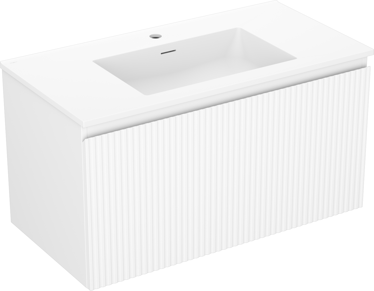 Mexen Rivel vonios kambario spintelė 90 cm su praustuvu Otis, 1 stalčius, rifliuota, balta matinė - 91A20-09047-1-BF01-W18M01