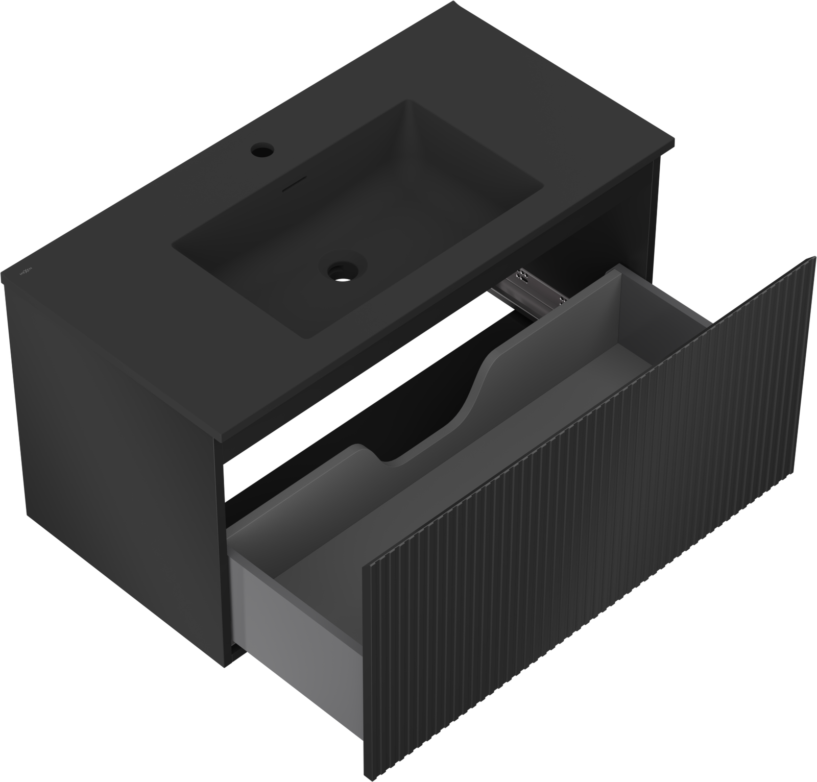 Mexen Rivel vonios spintelė 90 cm su praustuvu Otis, 1 stalčius, grioveliais, juoda matinė - 91A20-09047-1-BF71-W18M71