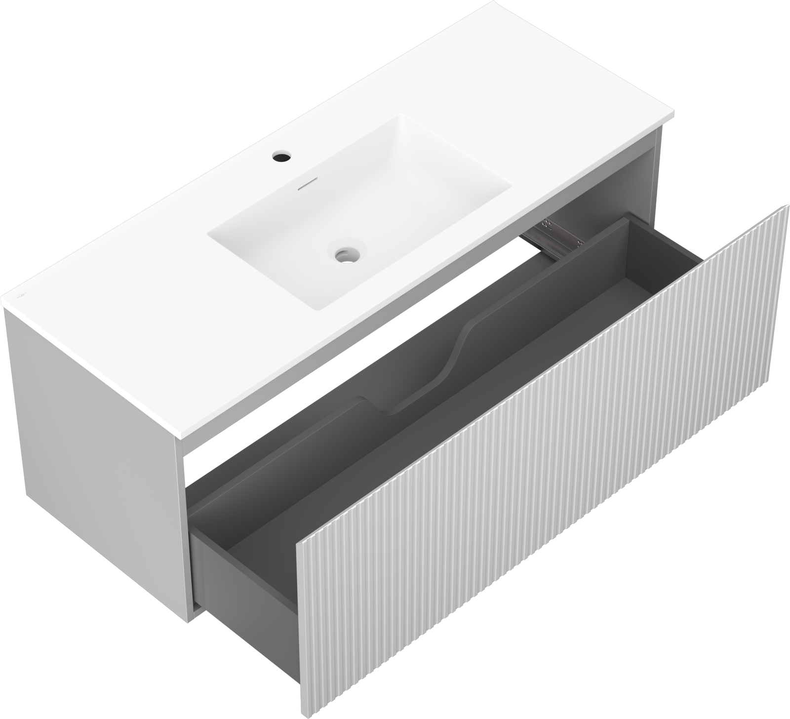 Mexen Rivel vonios kambario spintelė 120 cm su kriaukle Otis, 1 stalčius, grioveliais , pilka matinė/balta matinė