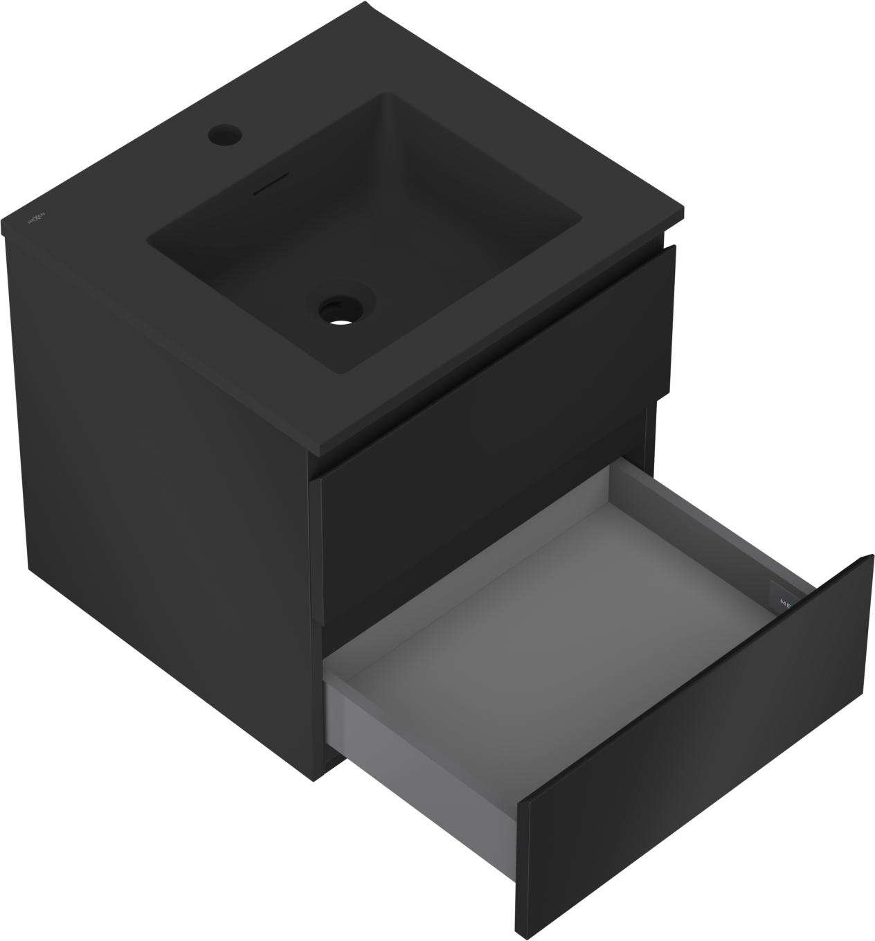 Mexen Orio vonios spintelė 50 cm su Otis praustuvu, 2 stalčiai, juodas matinis - 91A10-05047-2-BFF71-W18M71