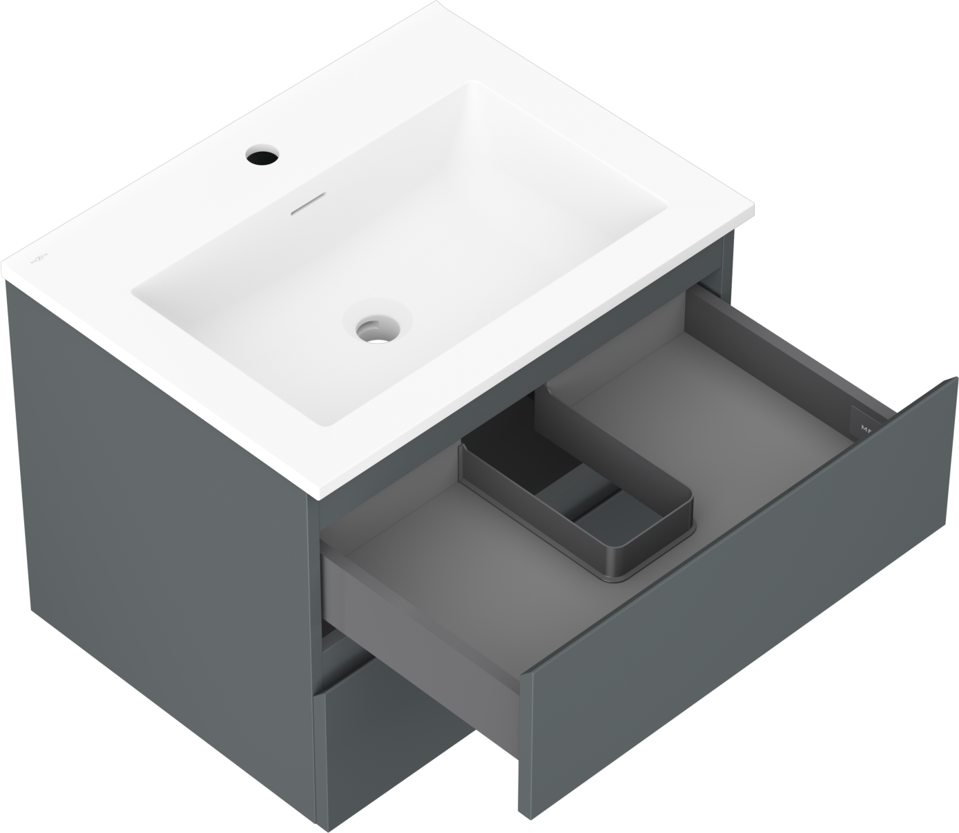 Mexen Orio vonios spintelė 60 cm su Otis kriaukle, 2 stalčiai, grafito matinė/balta matinė - 91A10-06047-2-BFF66-W18M01