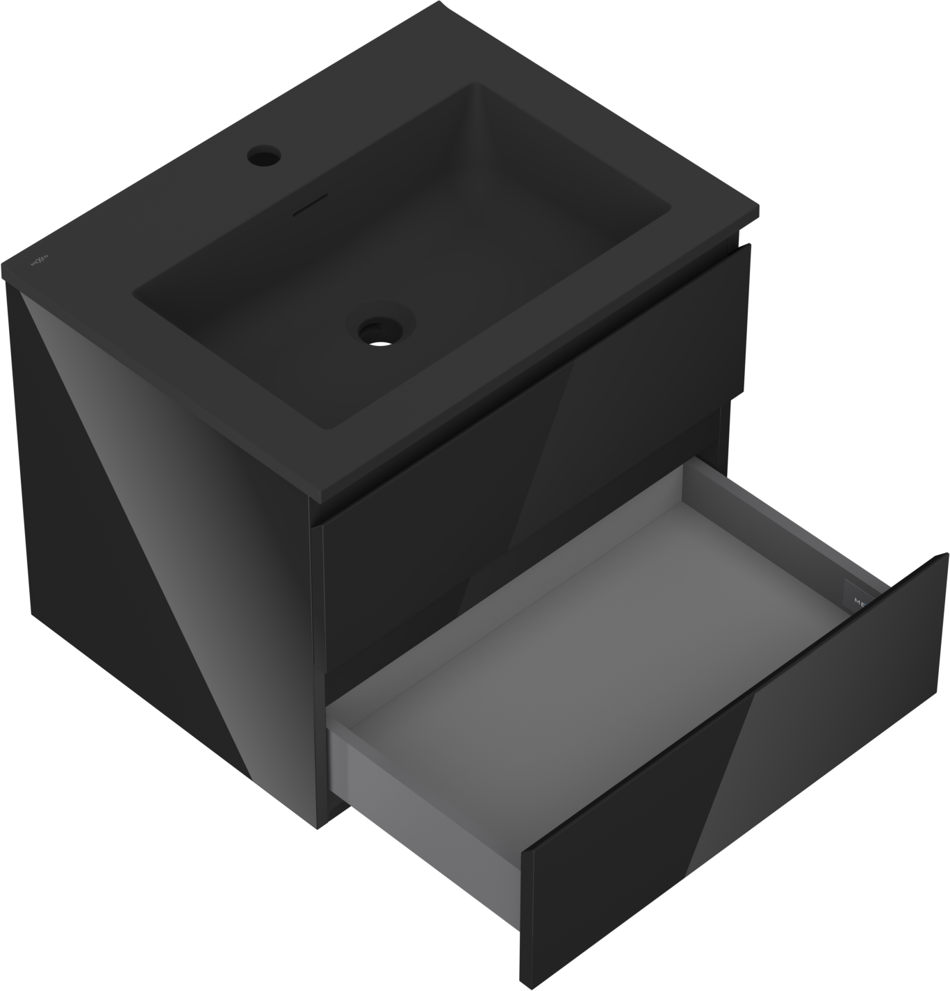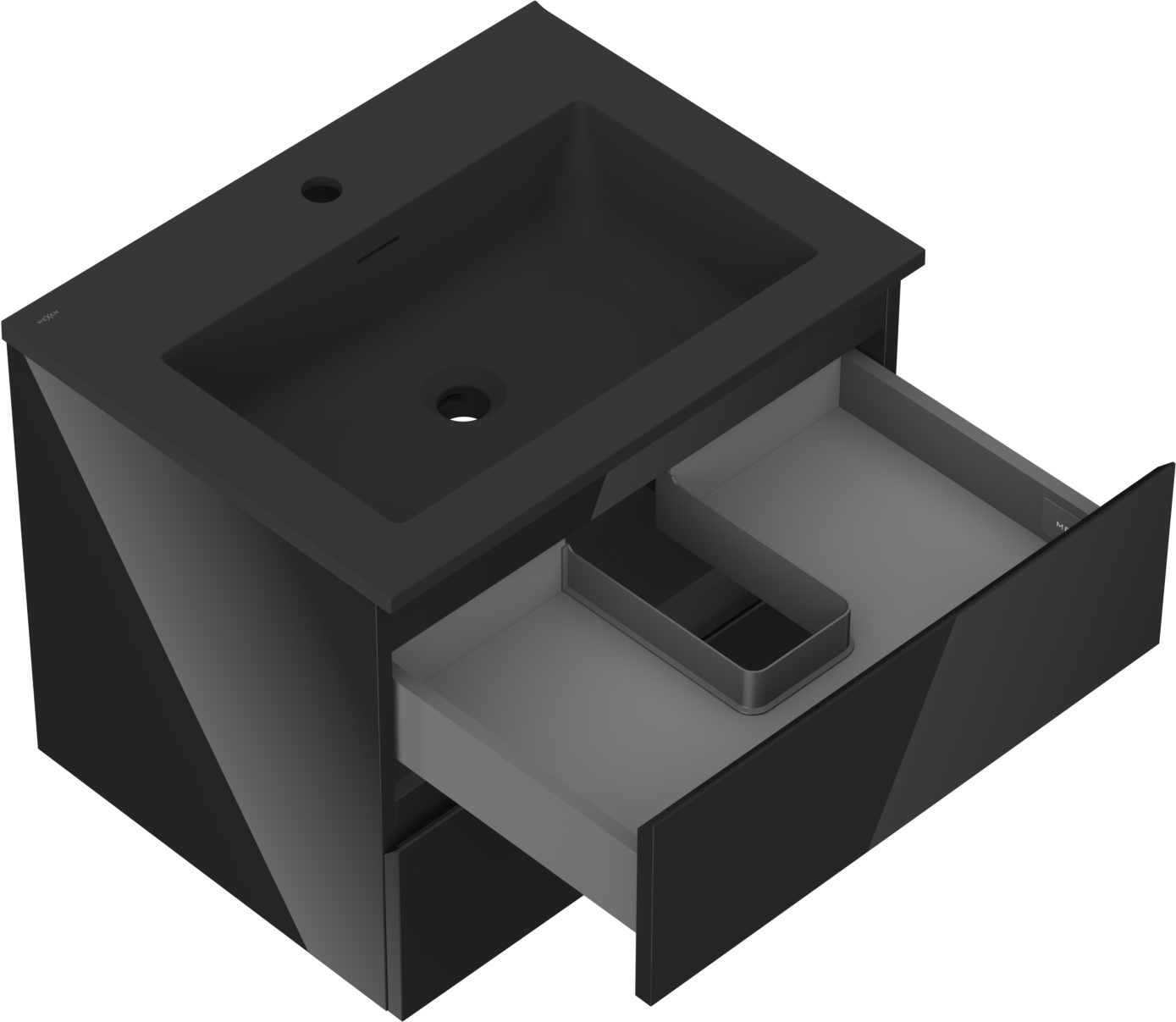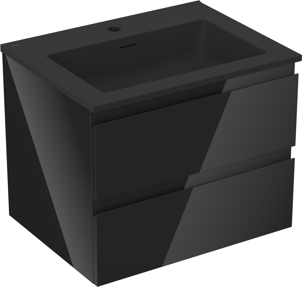 Mexen Orio vonios spintelė 60 cm su praustuvu Otis, 2 stalčiai, blizgi juoda/matinė juoda - 91A10-06047-2-BFF70-W18M71
