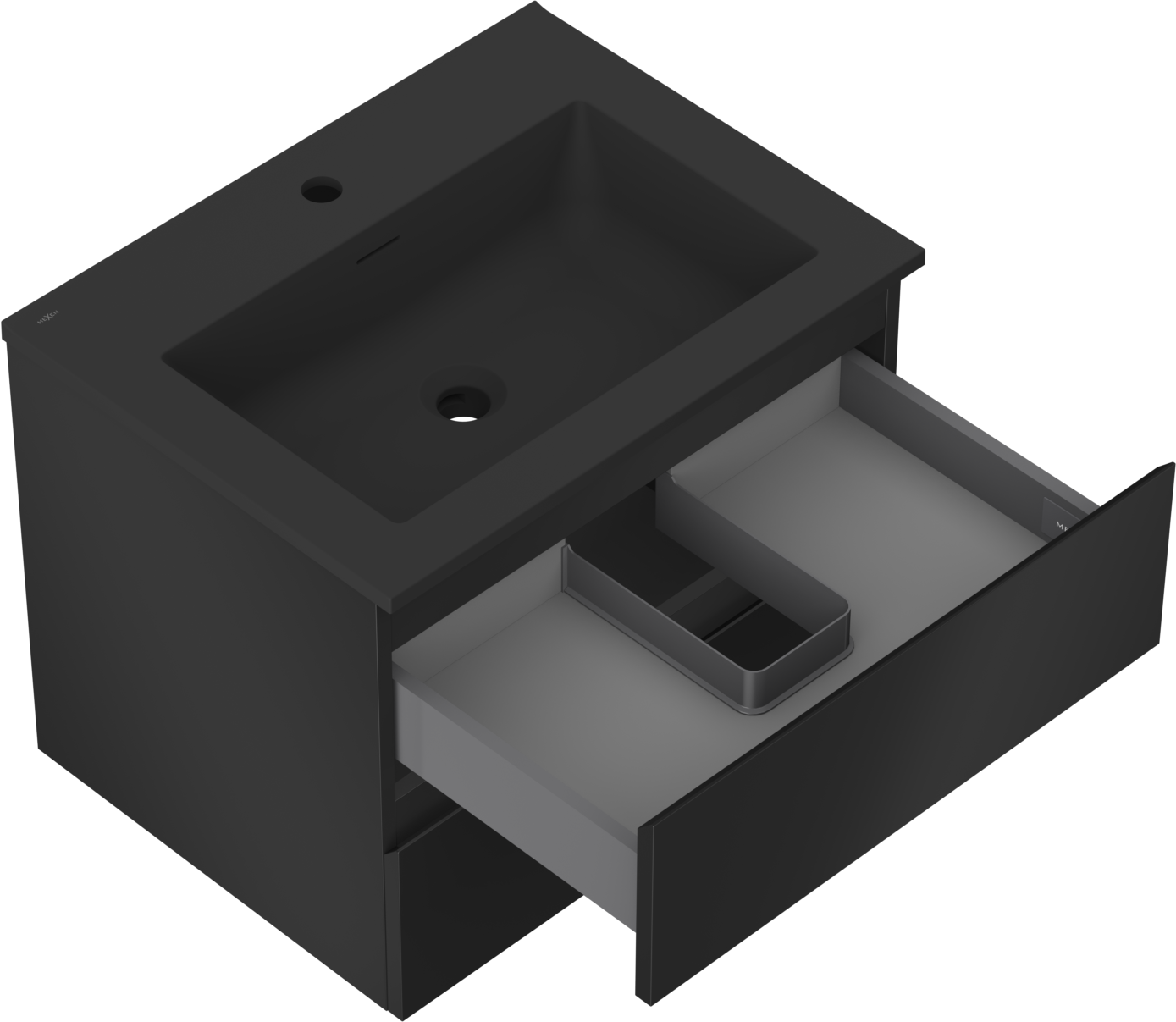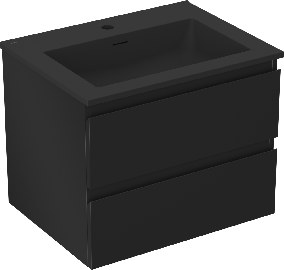 Mexen Orio vonios kambario spintelė 60 cm su praustuvu Otis, 2 stalčiai, juoda matinė - 91A10-06047-2-BFF71-W18M71