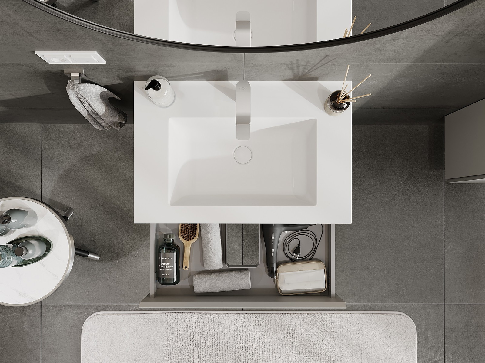 Mūsų moduliniai vonios baldai gali būti derinami tarpusavyje įvairiomis spalvų konfigūracijomis, leidžiant visiškai pritaikyti pagal asmeninius poreikius. Galima pasirinkti tiek atskirų elementų išvaizdą, tiek funkcijas, kas leidžia baldus pritaikyti pagal savo stiliaus ir naudojimo preferencijas.