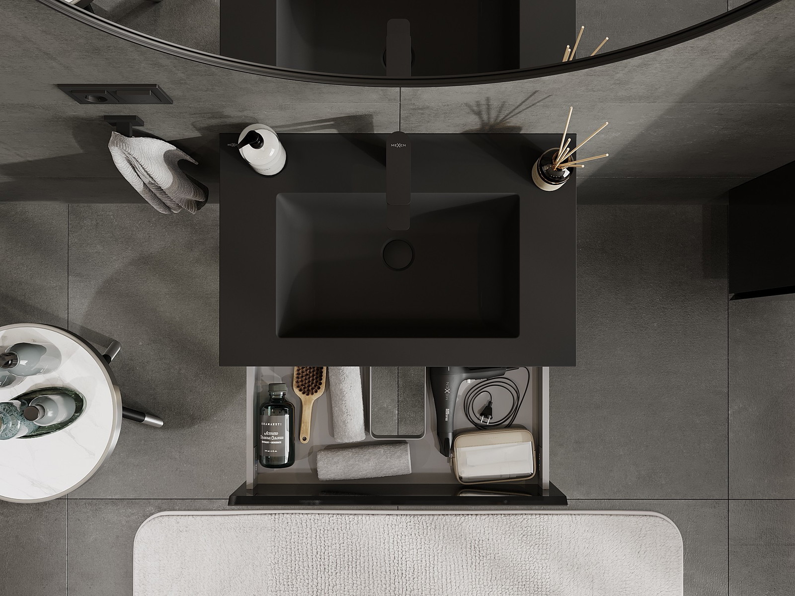 Mūsų moduliniai vonios baldai gali būti derinami tarpusavyje įvairiomis spalvų konfigūracijomis, leidžiant visiškai pritaikyti pagal asmeninius poreikius. Galima pasirinkti tiek atskirų elementų išvaizdą, tiek funkcijas, kas leidžia baldus pritaikyti pagal savo stiliaus ir naudojimo preferencijas.