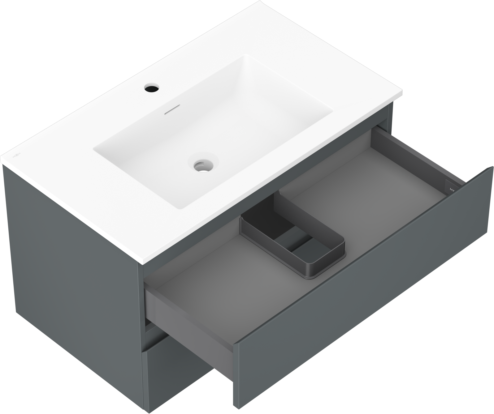 Mexen Orio 80 cm vonios spintelė su praustuvu Otis, 2 stalčiai, grafitas matinis/baltas matinis - 91A10-08047-2-BFF66-W18M01