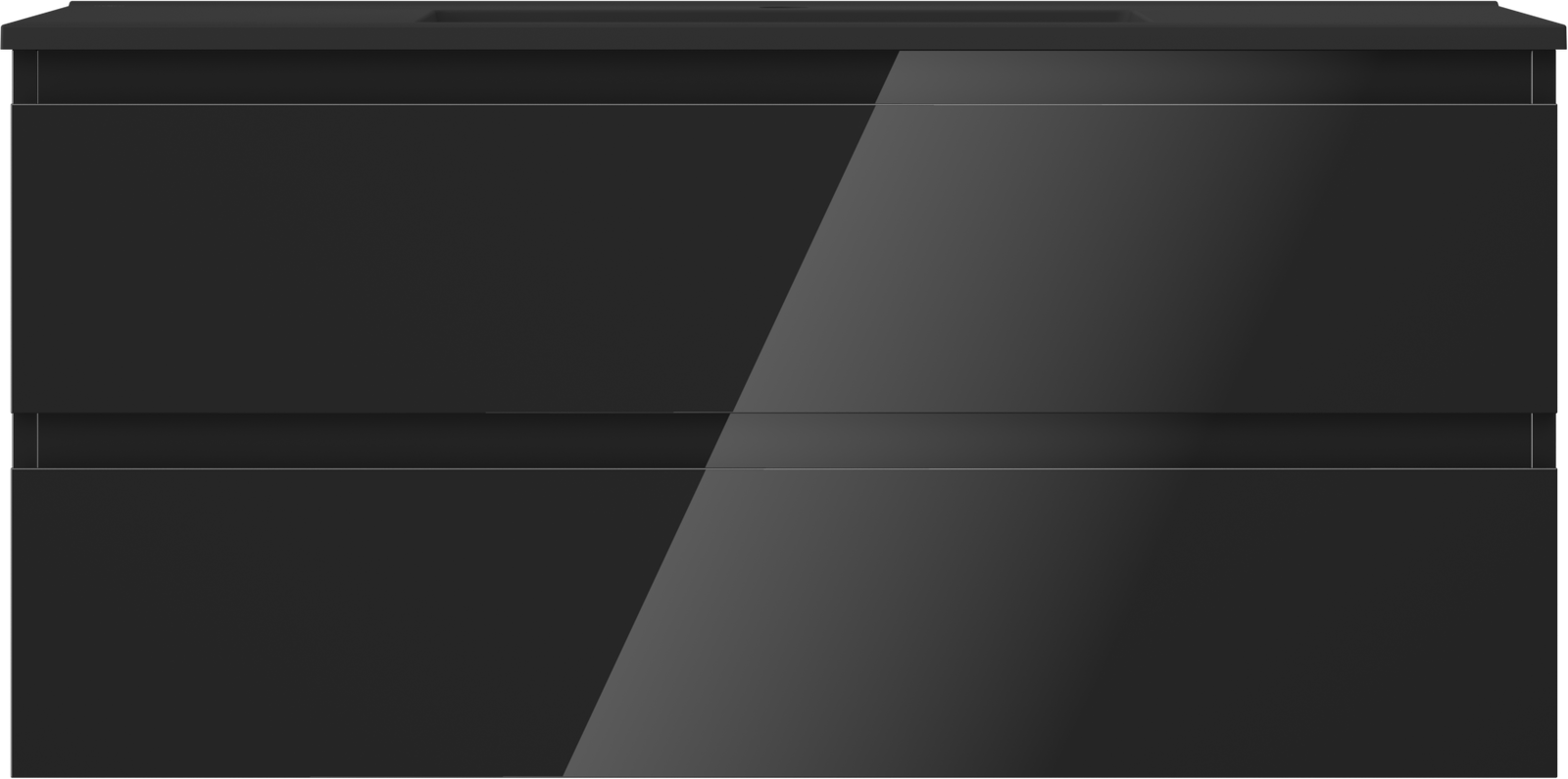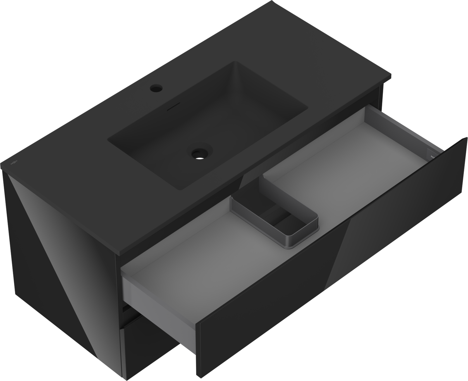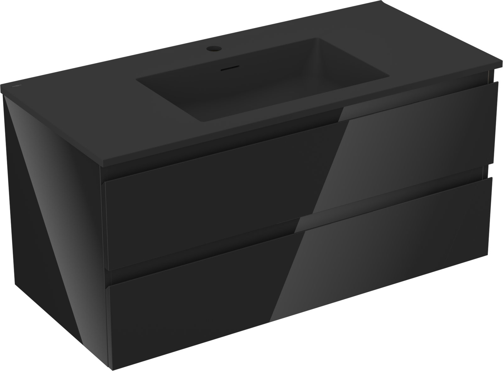 Mexen Orio vonios spintelė 100 cm su praustuvu Otis, 2 stalčiai, juoda blizgi/juoda matinė - 91A10-10047-2-BFF70-W18M71