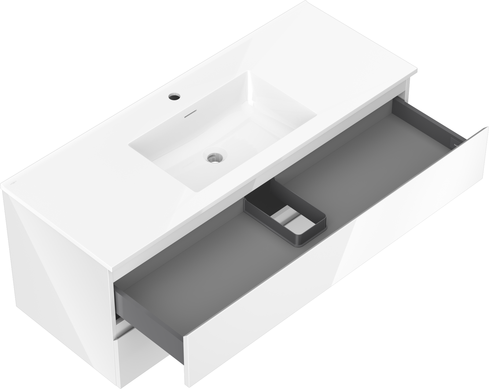 Mexen Orio vonios spintelė 120 cm su Otis kriaukle, 2 stalčiai, balta blizgi - 91A10-12047-2-BFF00-W18M00