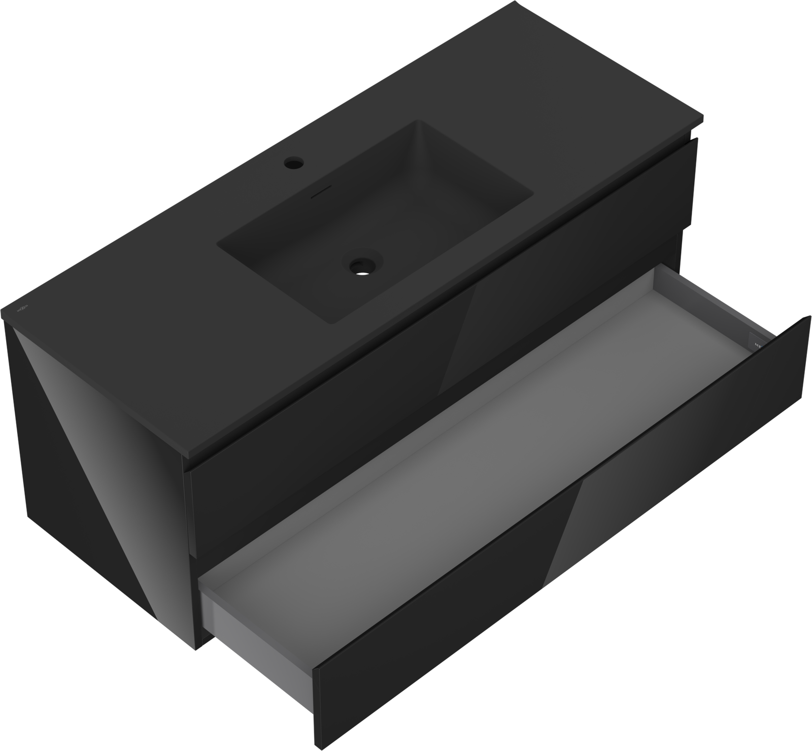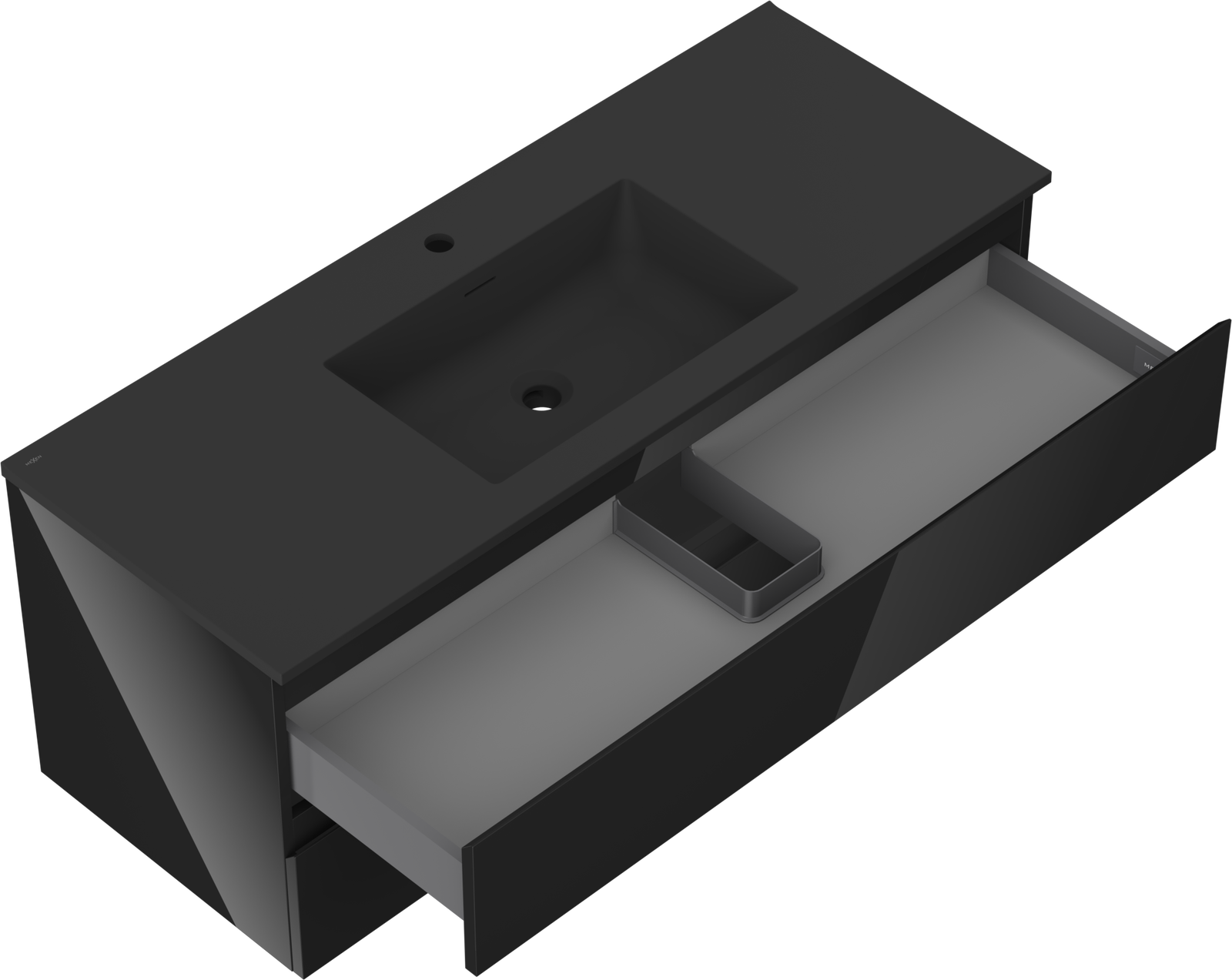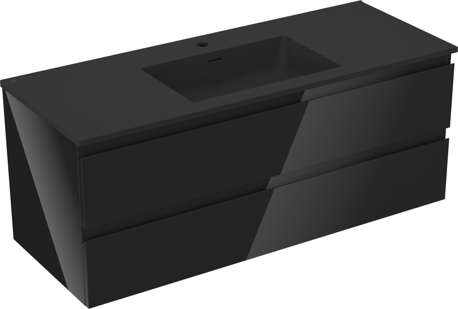 Mexen Orio vonios spintelė 120 cm su Otis praustuvu, 2 stalčiai, juodas blizgus/juodas matinis - 91A10-12047-2-BFF70-W18M71