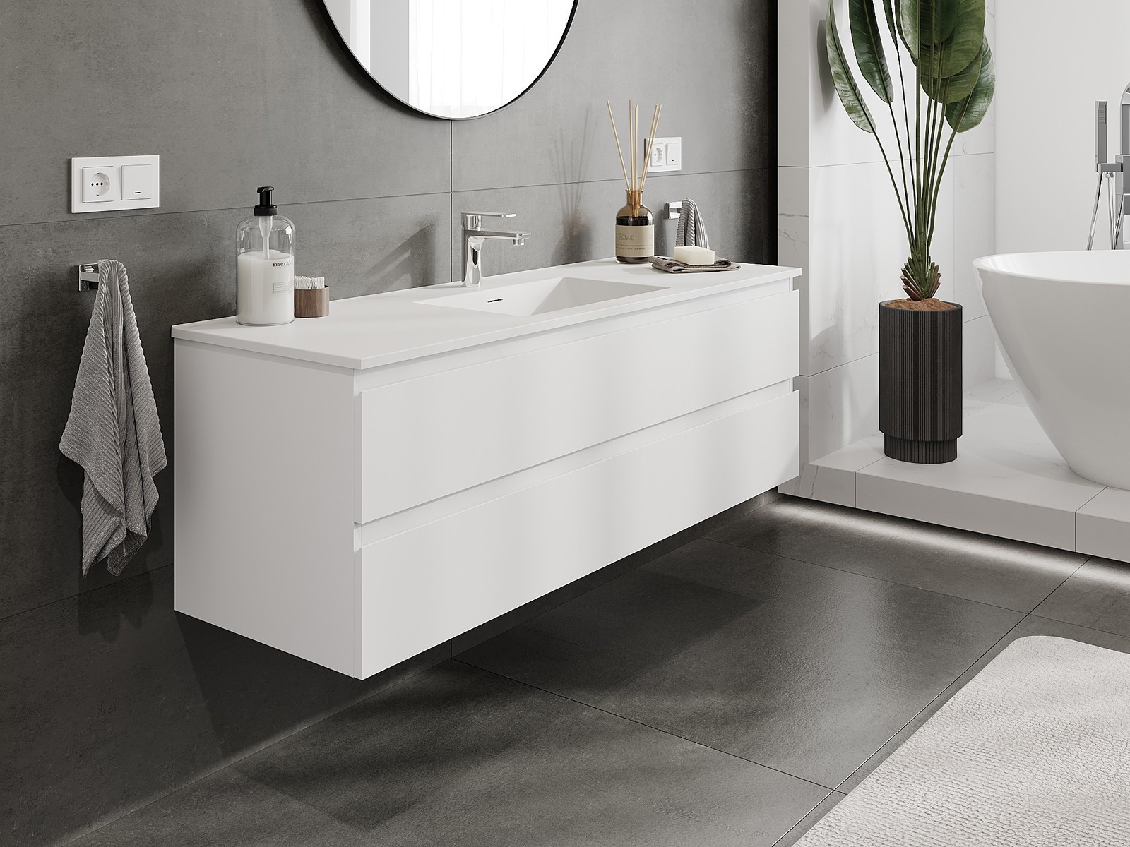 Mūsų moduliniai vonios baldai gali būti derinami tarpusavyje įvairiomis spalvų konfigūracijomis, leidžiant visiškai pritaikyti pagal asmeninius poreikius. Galima pasirinkti tiek atskirų elementų išvaizdą, tiek funkcijas, kas leidžia baldus pritaikyti pagal savo stiliaus ir naudojimo preferencijas.