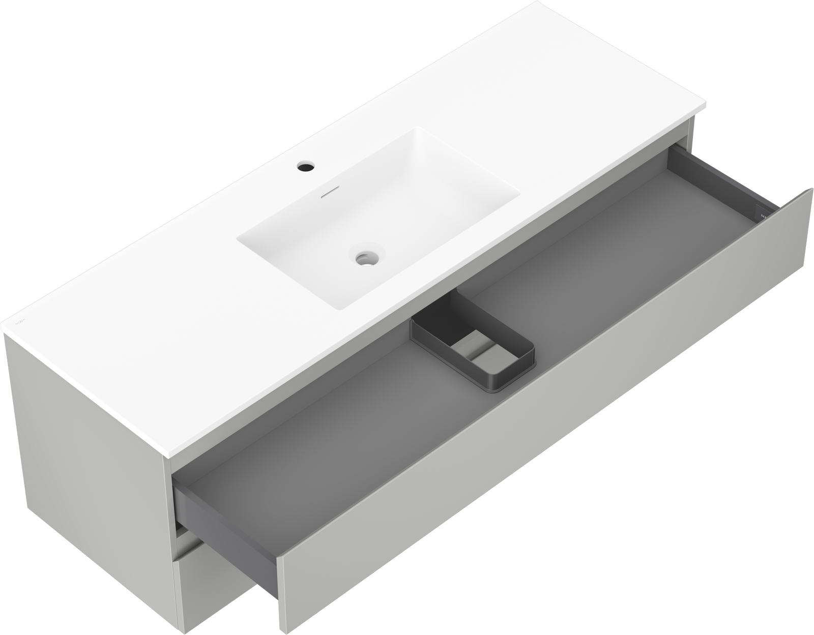 Mexen Orio vonios spintelė 140 cm su Otis kriaukle, 2 stalčiai, pilka matinė/balta matinė - 91A10-14047-2-BFF62-W18M01