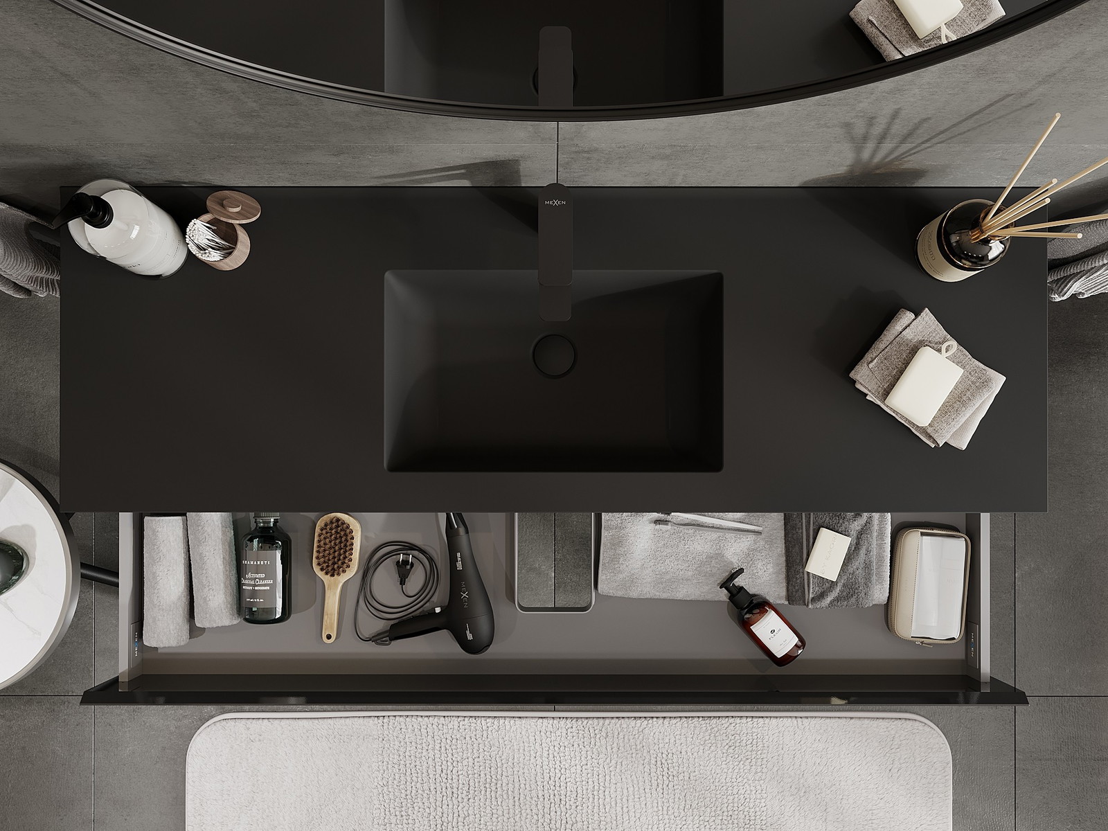 Mūsų moduliniai vonios baldai gali būti derinami tarpusavyje įvairiomis spalvų konfigūracijomis, leidžiant visiškai pritaikyti pagal asmeninius poreikius. Galima pasirinkti tiek atskirų elementų išvaizdą, tiek funkcijas, kas leidžia baldus pritaikyti pagal savo stiliaus ir naudojimo preferencijas.