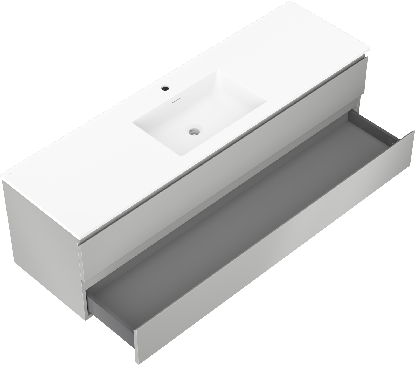 Mexen Orio vonios spintelė 160 cm su praustuvu Otis, 2 stalčiai, pilkas matinis/baltas matinis - 91A10-16047-2-BFF62-W18M01