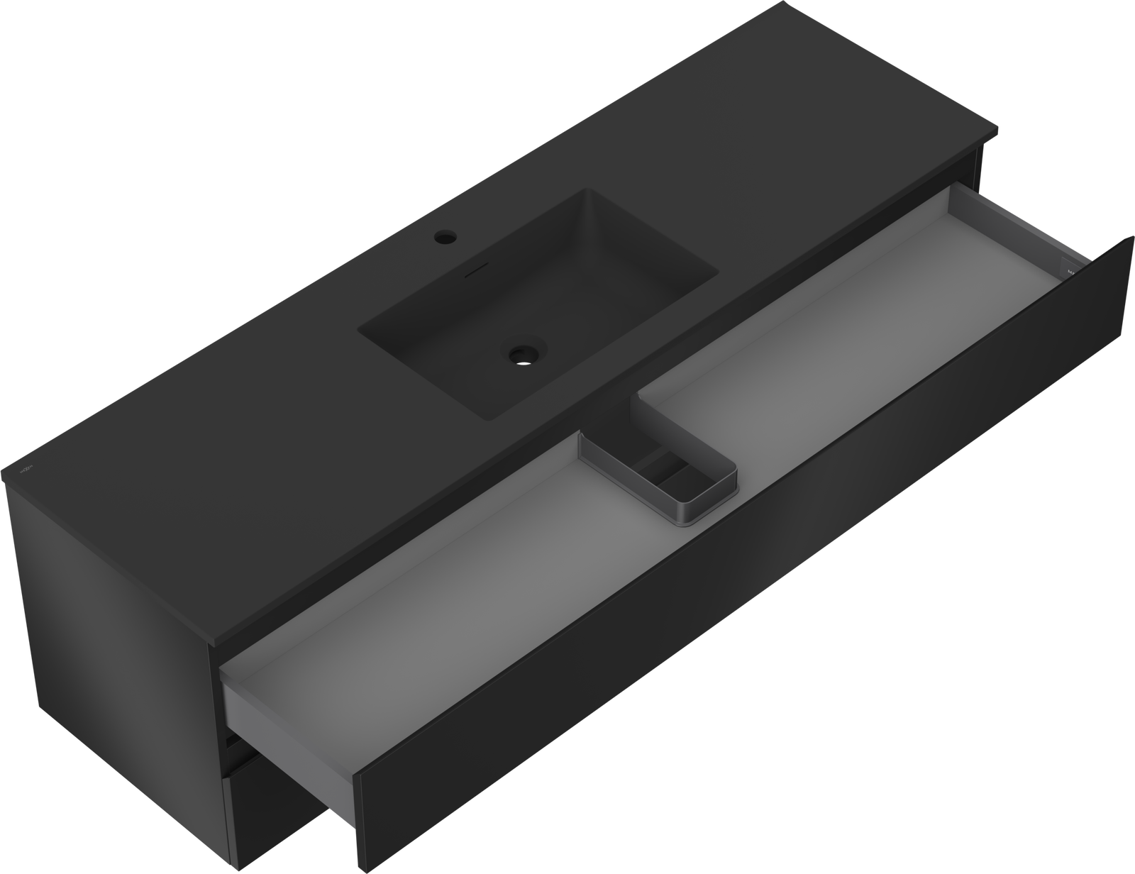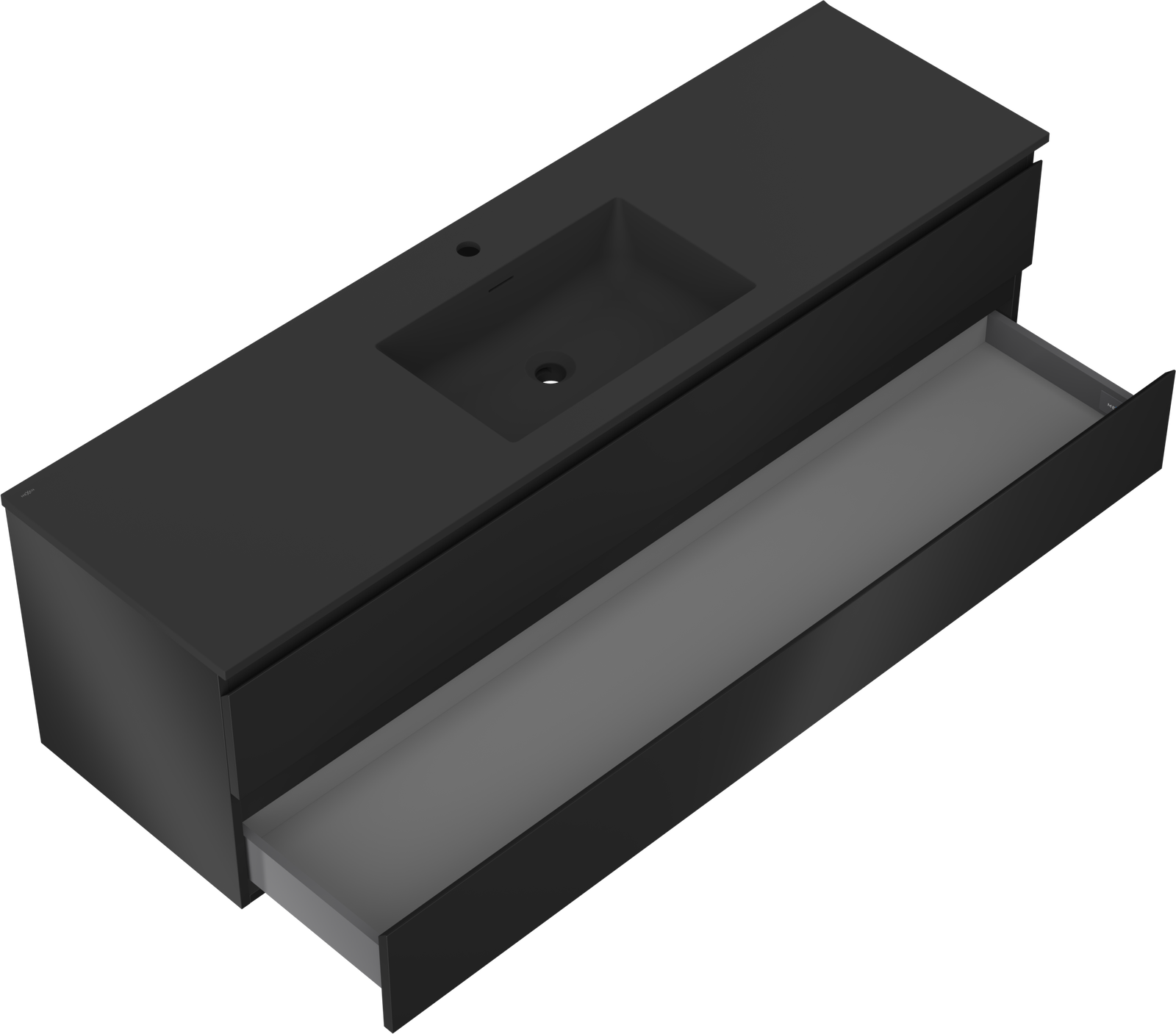 Mexen Orio vonios spintelė 160 cm su Otis kriaukle, 2 stalčiais, juoda matinė - 91A10-16047-2-BFF71-W18M71