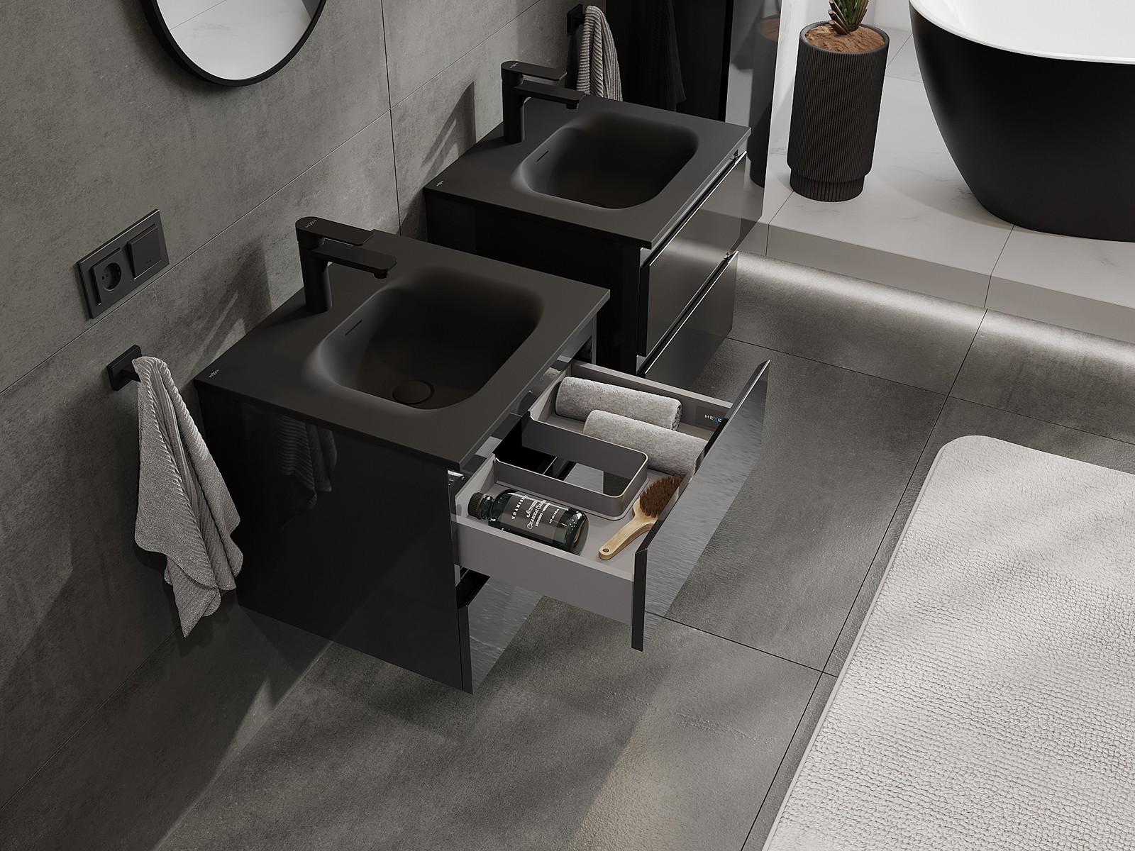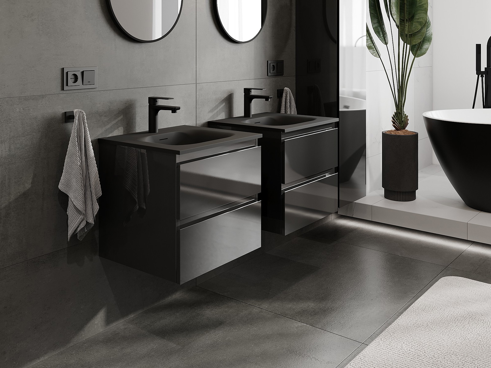 Mūsų moduliniai vonios baldai gali būti derinami tarpusavyje įvairiomis spalvų konfigūracijomis, leidžiant visiškai pritaikyti pagal asmeninius poreikius. Galima pasirinkti tiek atskirų elementų išvaizdą, tiek funkcijas, kas leidžia baldus pritaikyti pagal savo stiliaus ir naudojimo preferencijas.