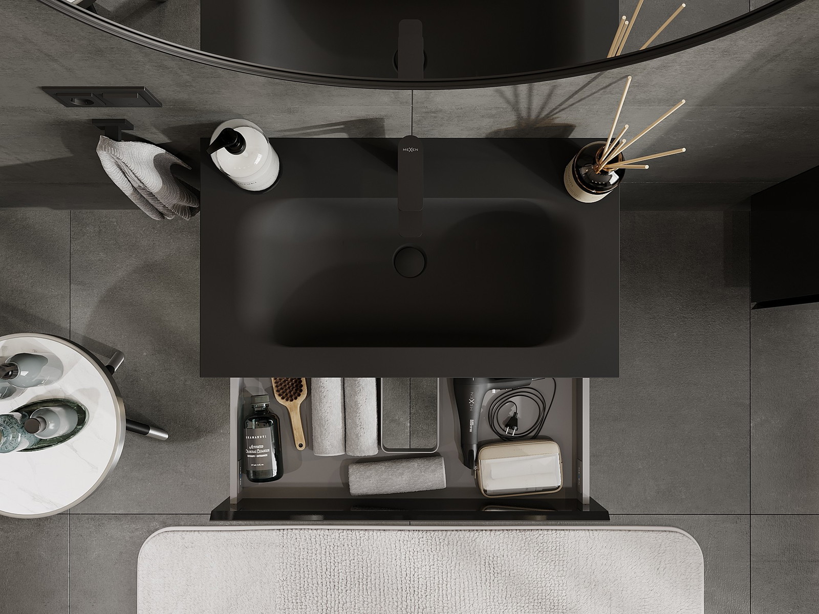 Mūsų moduliniai vonios baldai gali būti derinami tarpusavyje įvairiomis spalvų konfigūracijomis, leidžiant visiškai pritaikyti pagal asmeninius poreikius. Galima pasirinkti tiek atskirų elementų išvaizdą, tiek funkcijas, kas leidžia baldus pritaikyti pagal savo stiliaus ir naudojimo preferencijas.