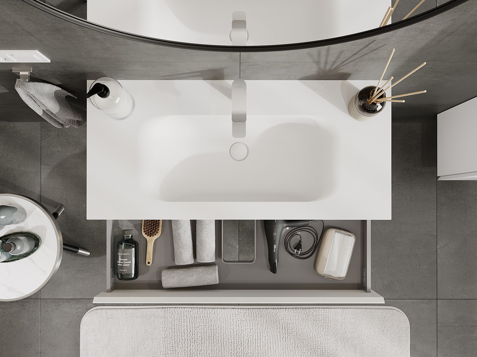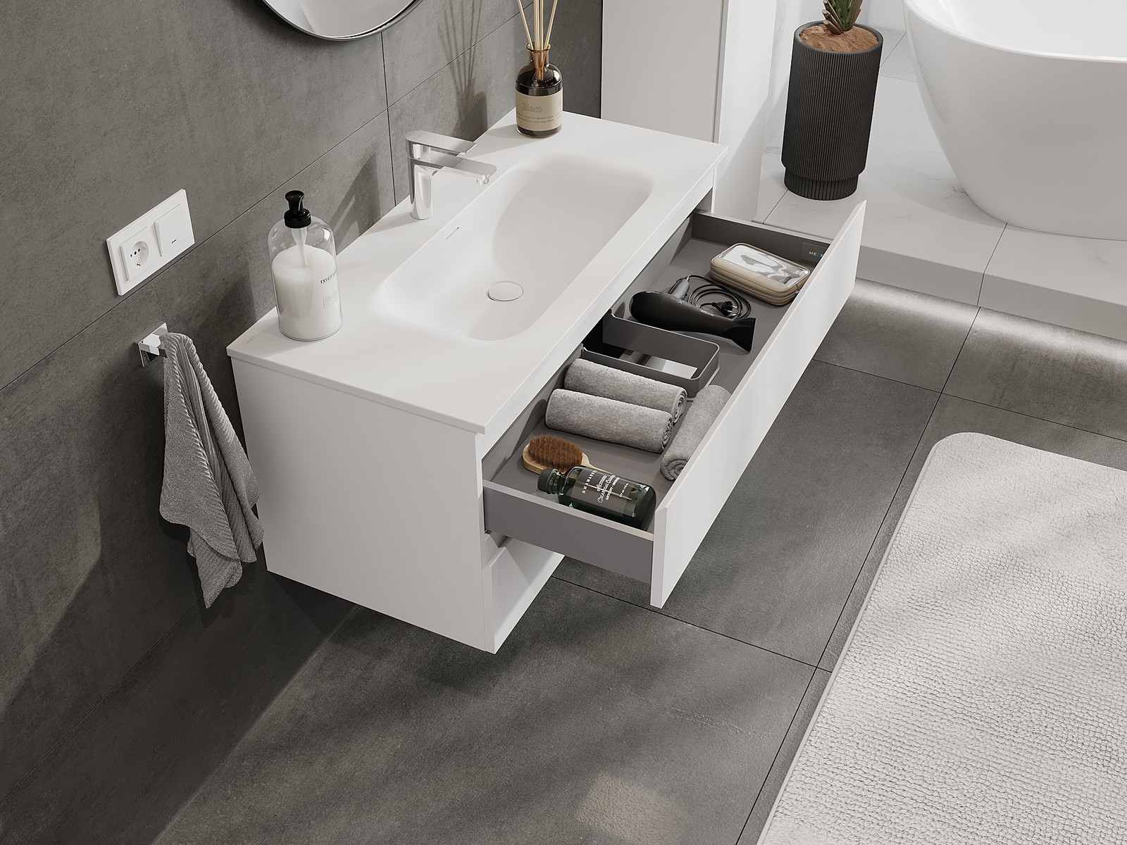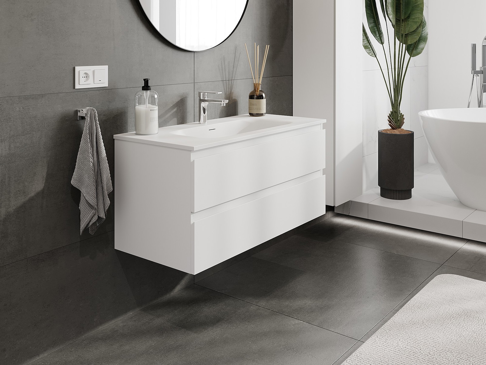Mūsų moduliniai vonios baldai gali būti derinami tarpusavyje įvairiomis spalvų konfigūracijomis, leidžiant visiškai pritaikyti pagal asmeninius poreikius. Galima pasirinkti tiek atskirų elementų išvaizdą, tiek funkcijas, kas leidžia baldus pritaikyti pagal savo stiliaus ir naudojimo preferencijas.