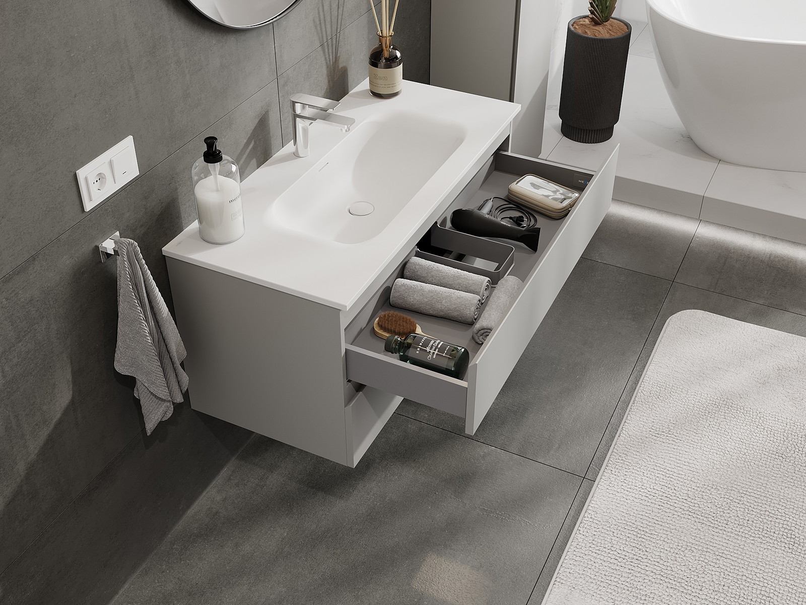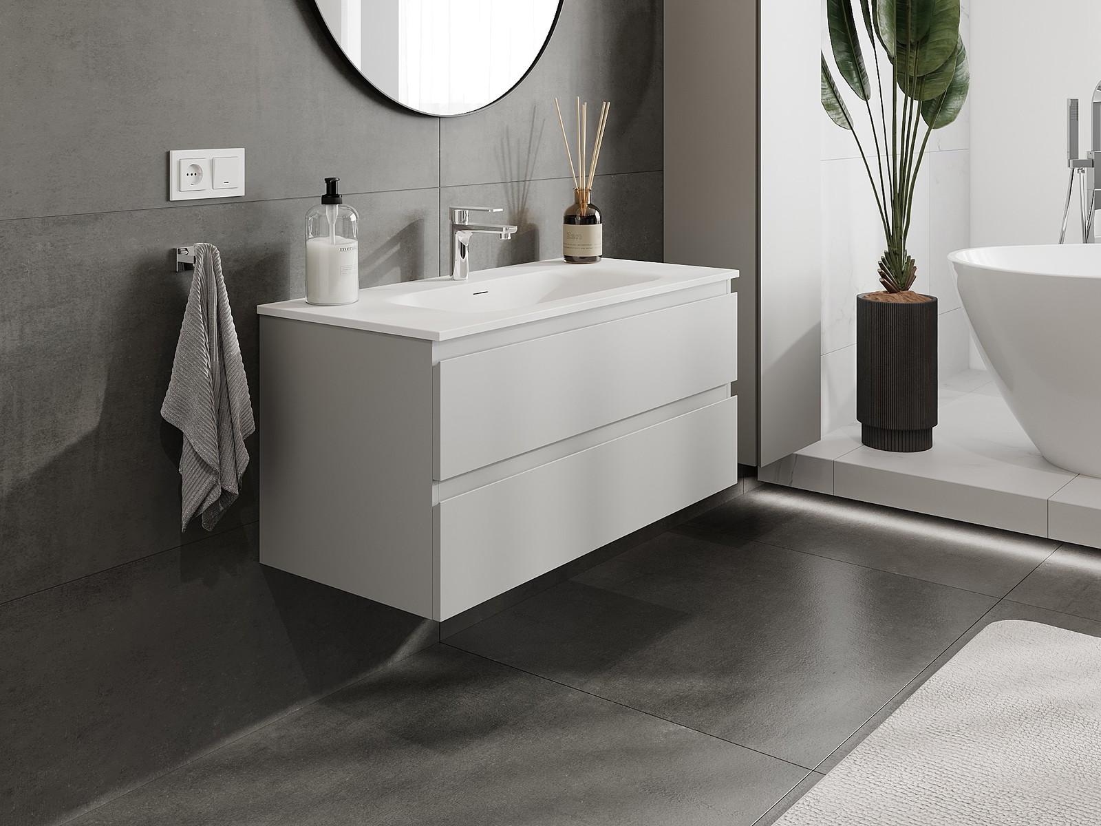 Mūsų moduliniai vonios baldai gali būti derinami tarpusavyje įvairiomis spalvų konfigūracijomis, leidžiant visiškai pritaikyti pagal asmeninius poreikius. Galima pasirinkti tiek atskirų elementų išvaizdą, tiek funkcijas, kas leidžia baldus pritaikyti pagal savo stiliaus ir naudojimo preferencijas.