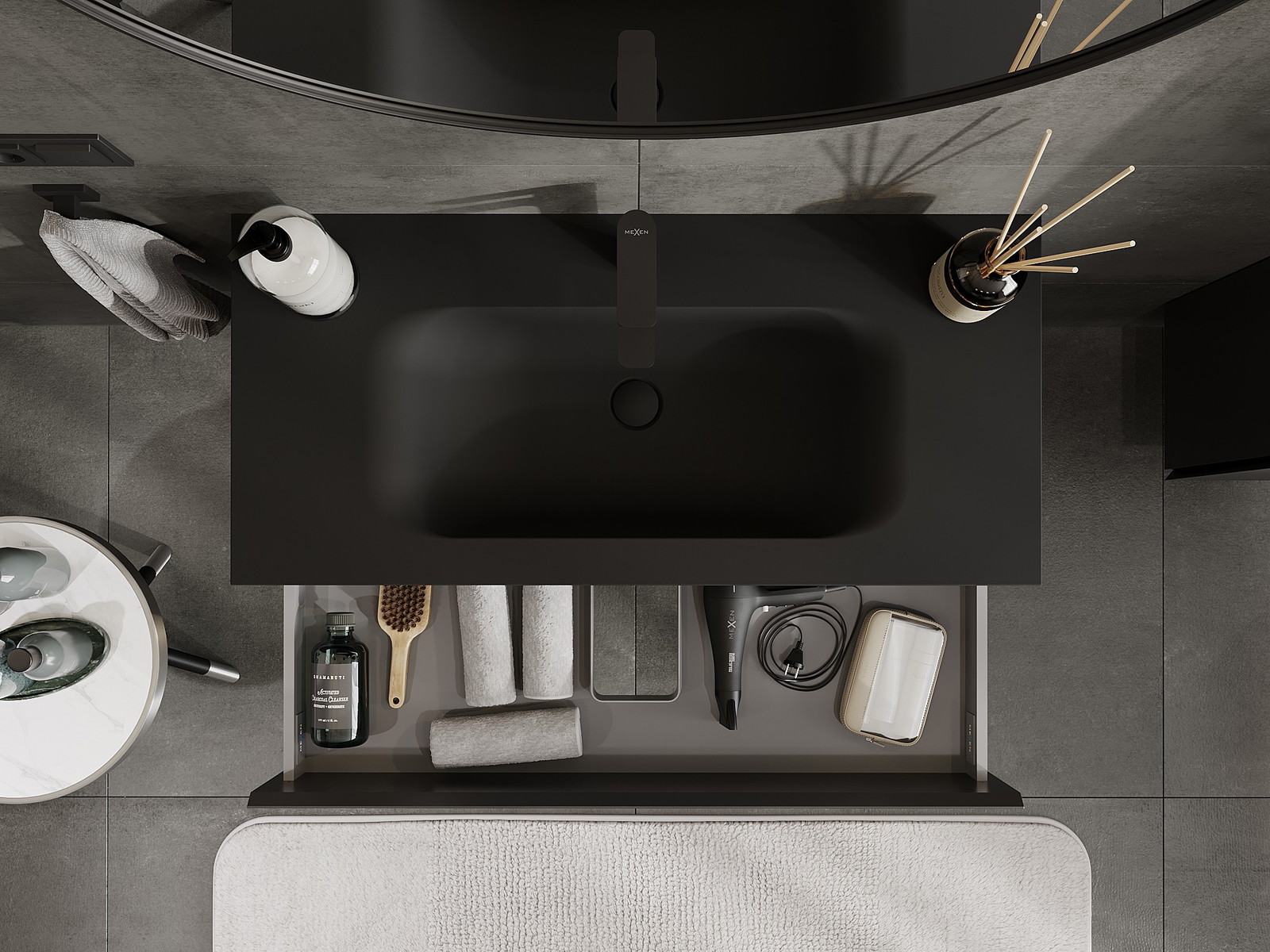 Spintelės korpusas pristatomas visiškai surinktas, tai reiškia maksimalų patogumą ir laiko taupymą. Jums nereikia praleisti valandų surenkant baldą – tiesiog sumontuokite jį pasirinktoje vietoje vonios kambaryje. Tai idealus sprendimas žmonėms, kurie vertina greitą montavimą ir momentinį efektą.