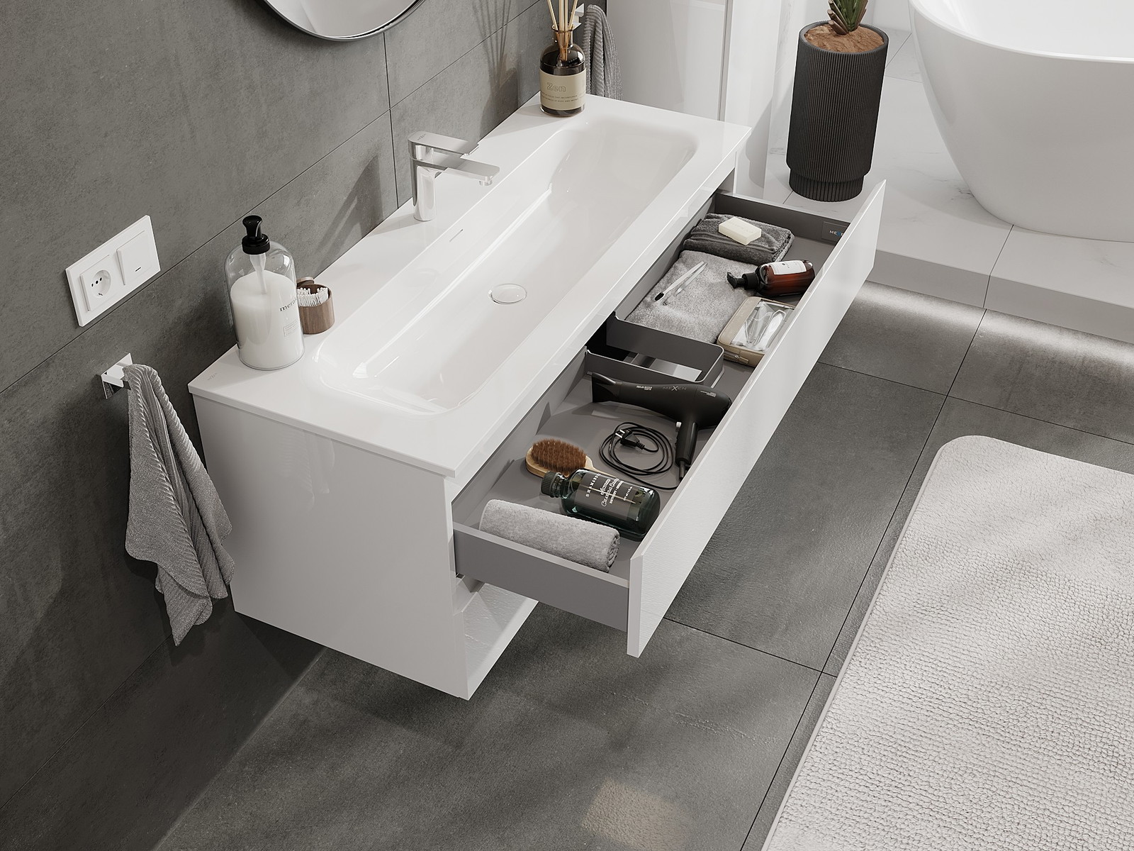 Dėl tvirtų medžiagų, preciziško atlikimo ir šiuolaikinių technologinių sprendimų, produktas užtikrina patogų naudojimą, atsparumą drėgmei ir temperatūros pokyčiams, taip pat elegantišką išvaizdą, kuri tinka įvairiems vonios kambario stiliams.