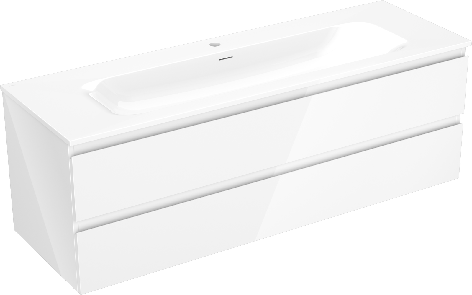 Mexen Orio vonios spintelė 140 cm su Vela kriaukle, 2 stalčiai, blizgančiai baltos spalvos - 91A10-14047-2-BFF00-W23M00