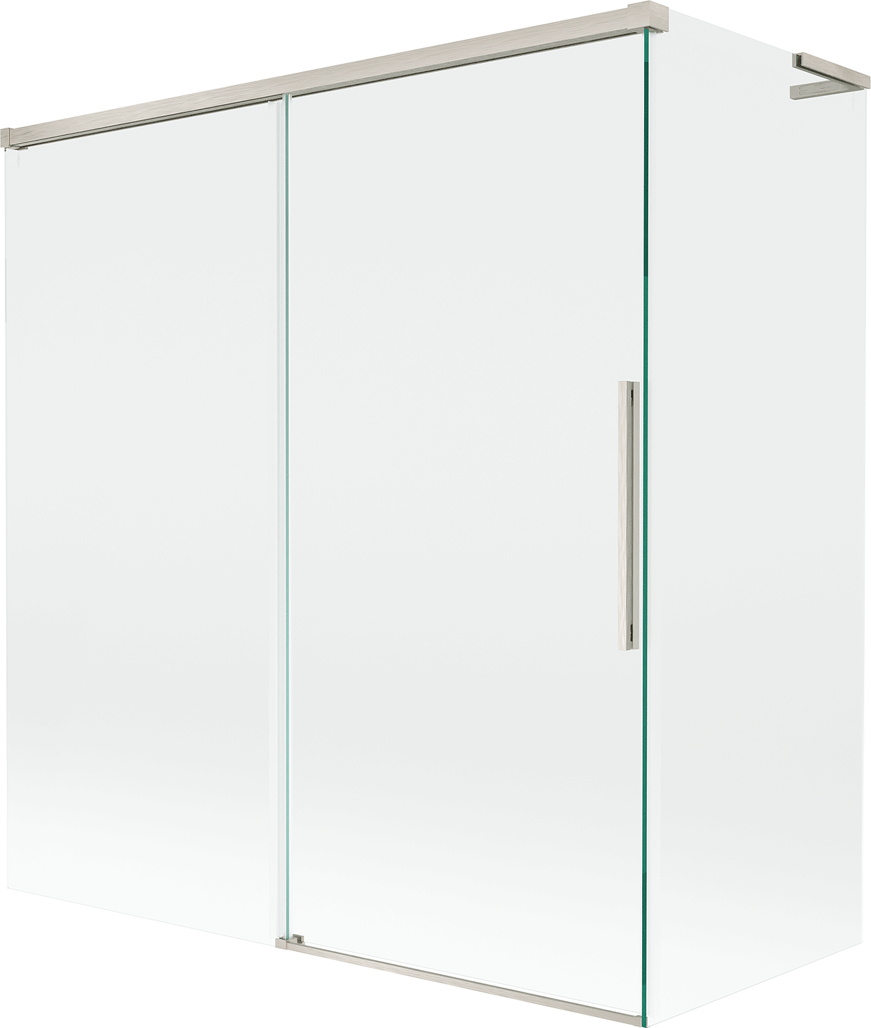 Mexen Rox L vonios pertvara, 2 dalių, slankiojanti 150 + 70 x 150 cm, permatoma, šlifuotas nikelis - 8C9L-150-070-97-00