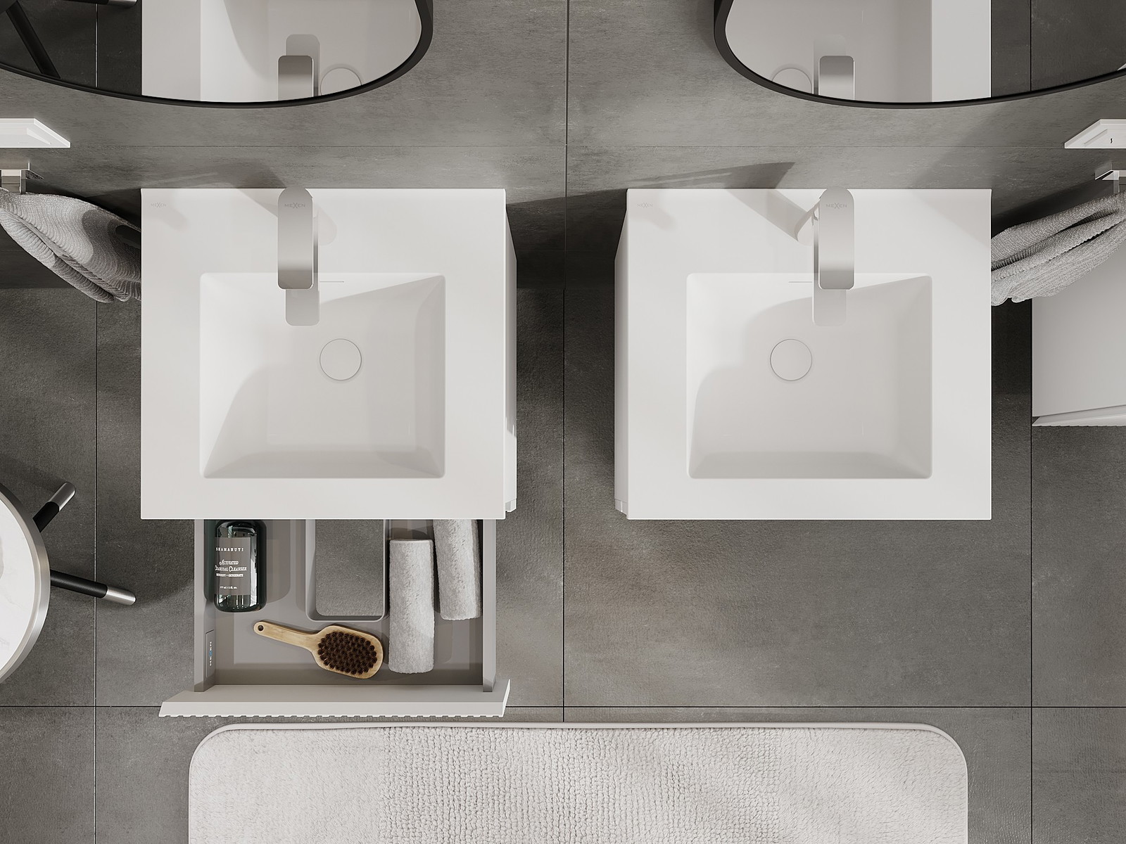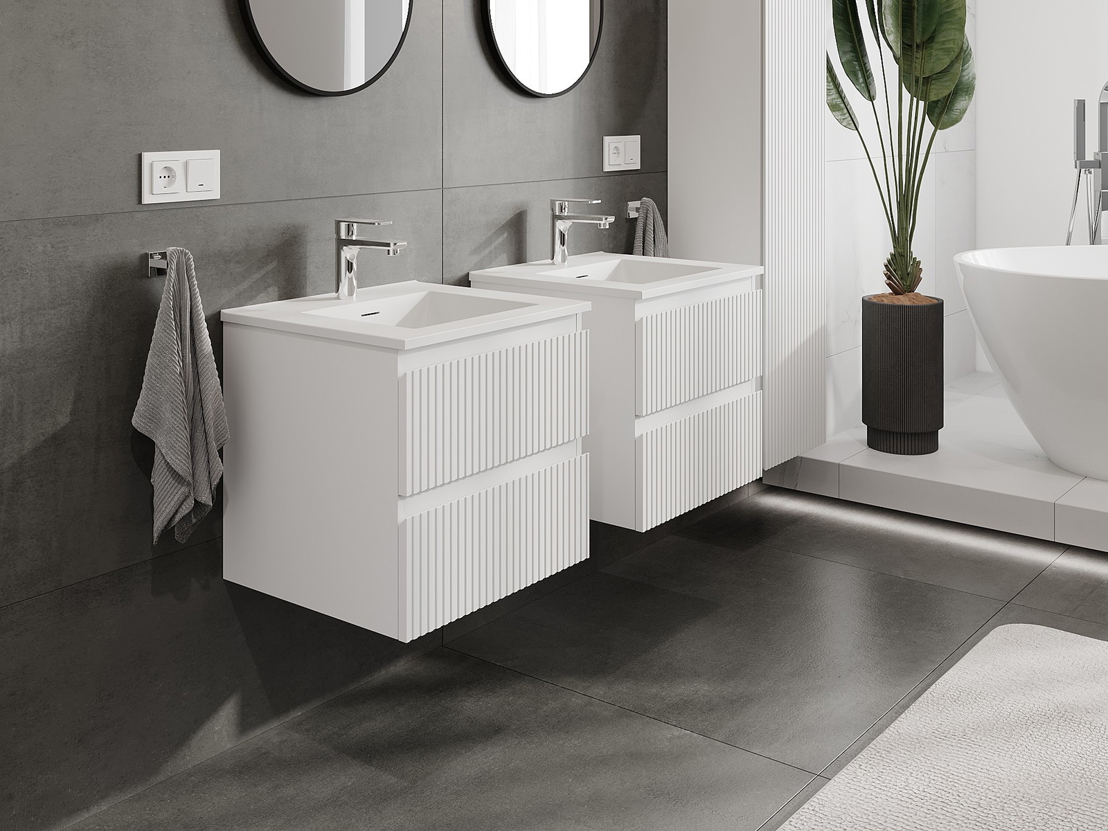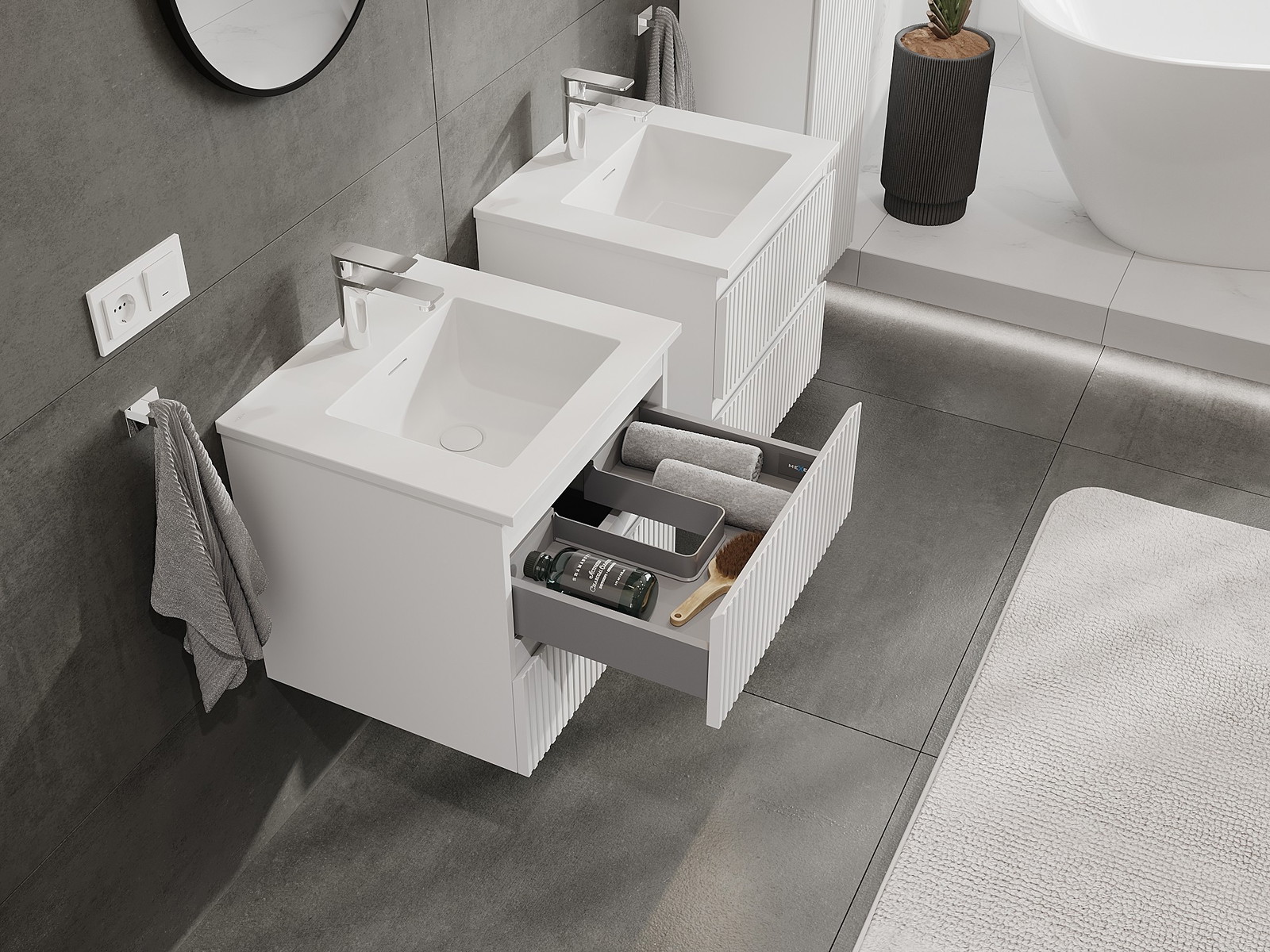 Mūsų moduliniai vonios baldai gali būti derinami tarpusavyje įvairiomis spalvų konfigūracijomis, leidžiant visiškai pritaikyti pagal asmeninius poreikius. Galima pasirinkti tiek atskirų elementų išvaizdą, tiek funkcijas, kas leidžia baldus pritaikyti pagal savo stiliaus ir naudojimo preferencijas.