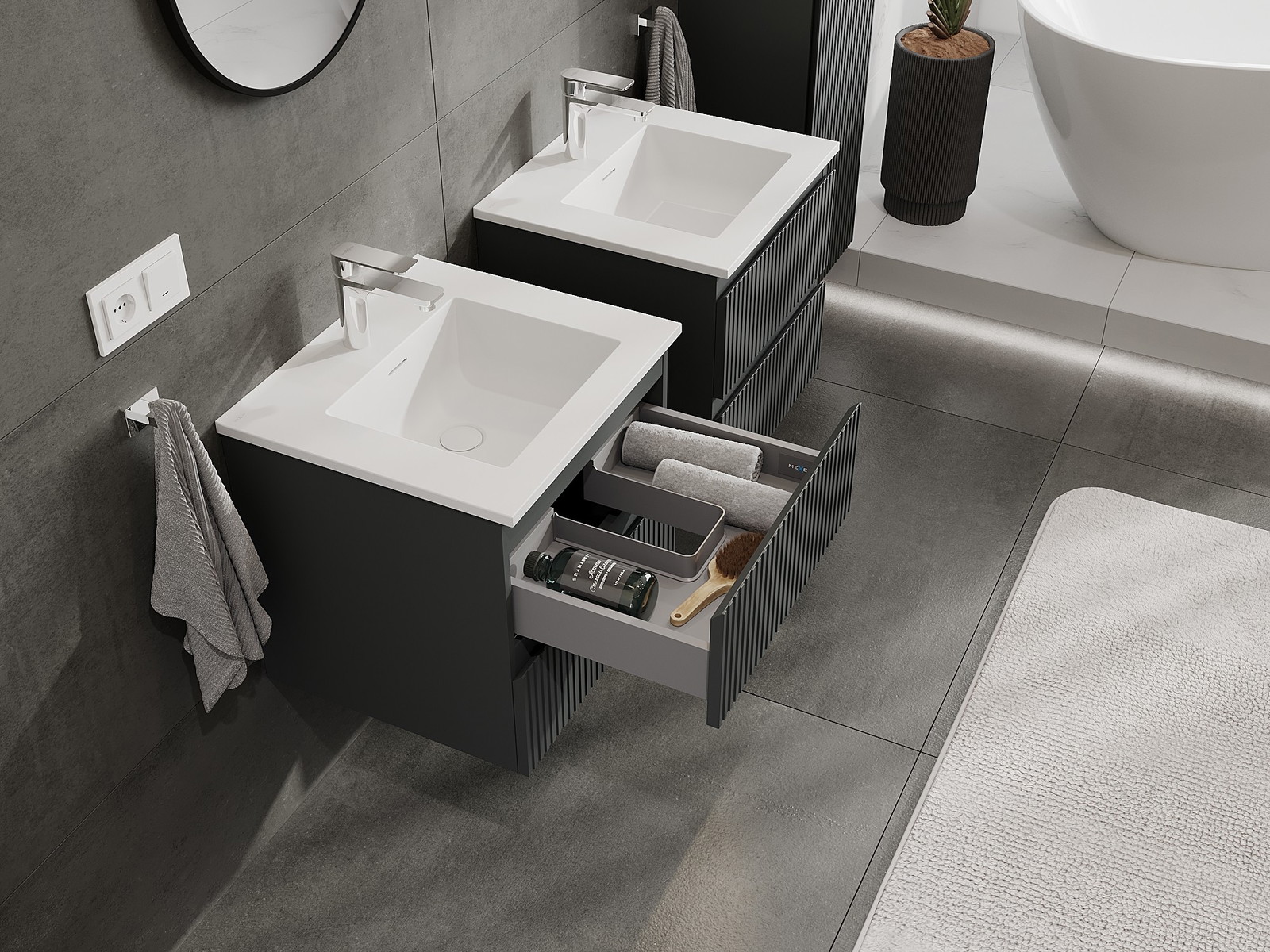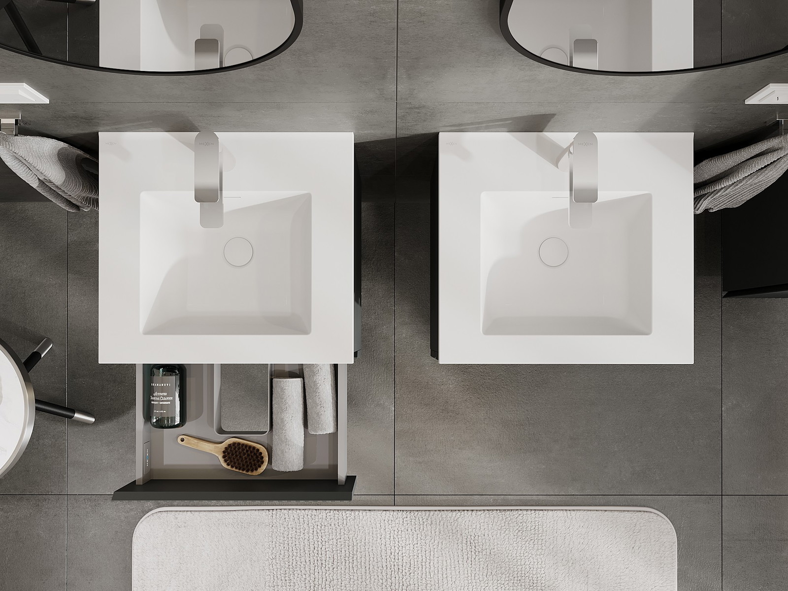 Mūsų moduliniai vonios baldai gali būti derinami tarpusavyje įvairiomis spalvų konfigūracijomis, leidžiant visiškai pritaikyti pagal asmeninius poreikius. Galima pasirinkti tiek atskirų elementų išvaizdą, tiek funkcijas, kas leidžia baldus pritaikyti pagal savo stiliaus ir naudojimo preferencijas.