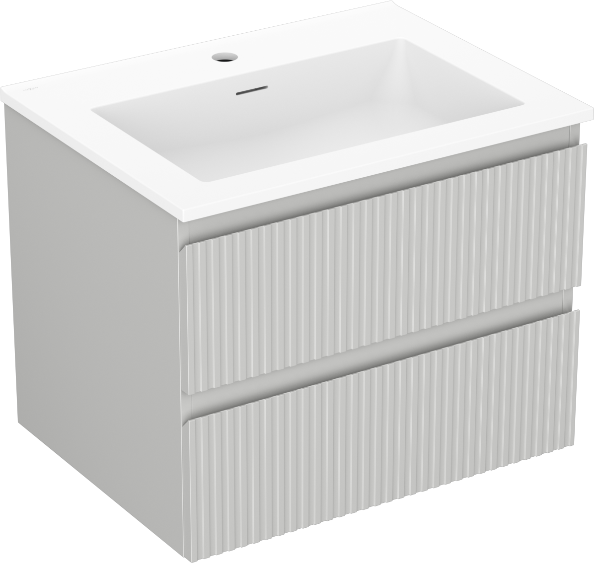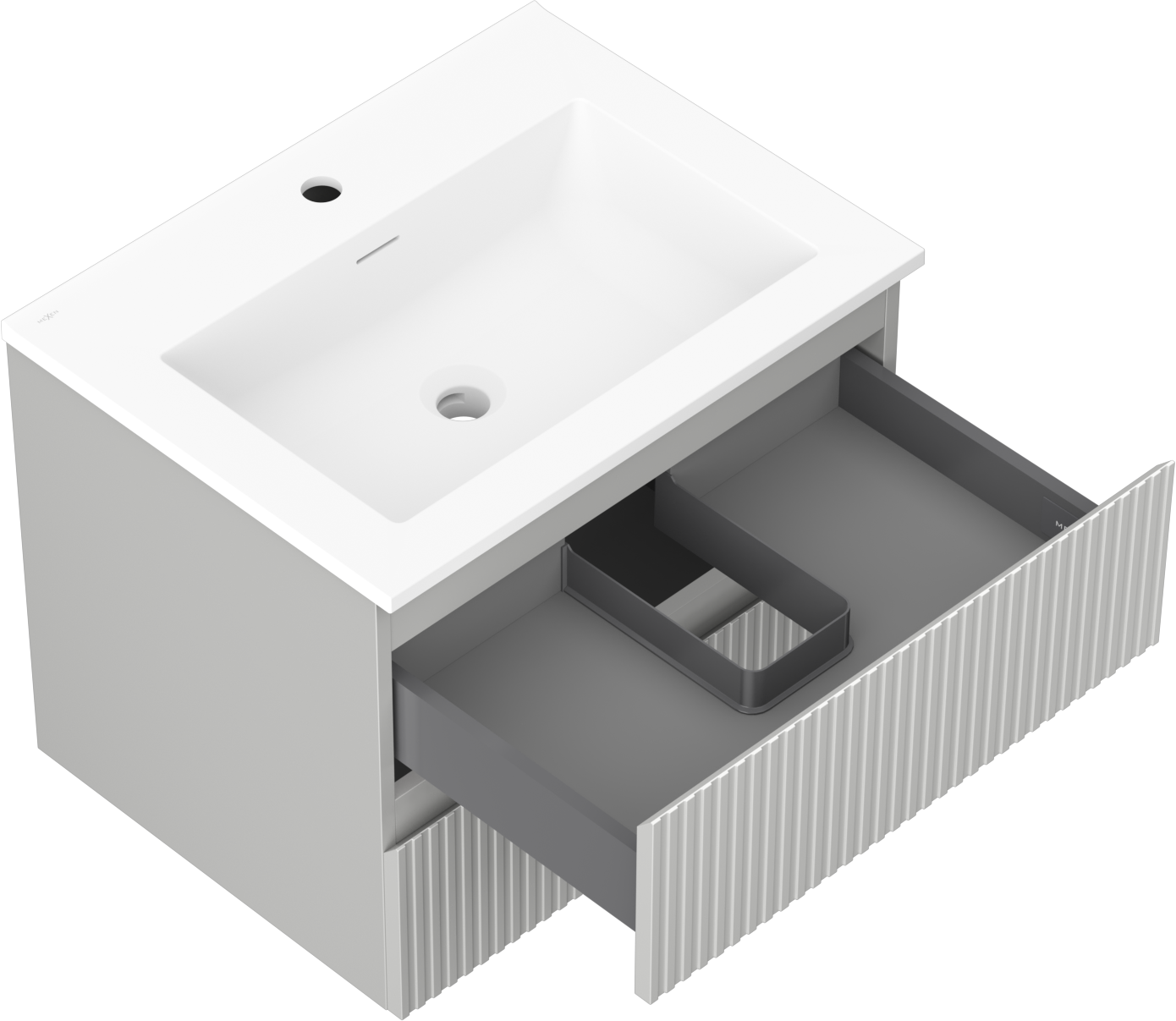 Mexen Rivel vonios spintelė 60 cm su praustuvu Otis, 2 stalčiai, briaunotas, pilka matinė/balta matinė