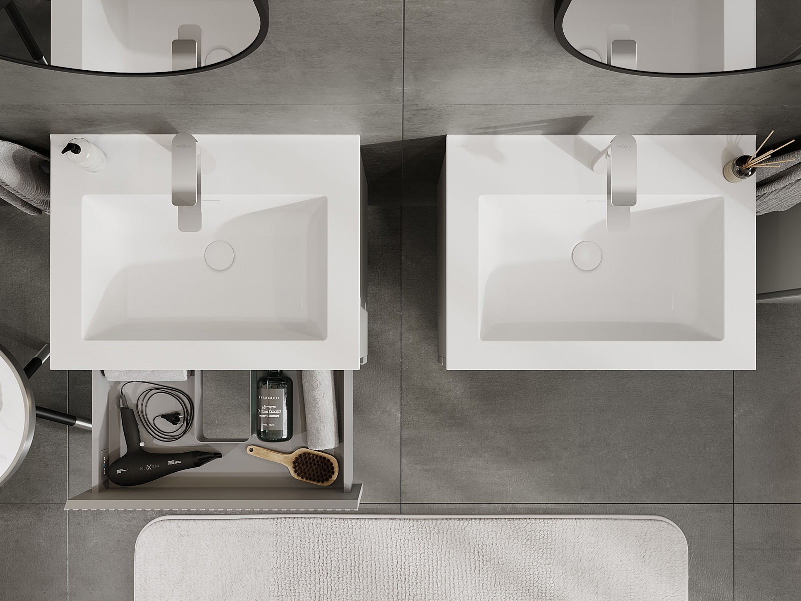 Mūsų moduliniai vonios baldai gali būti derinami tarpusavyje įvairiomis spalvų konfigūracijomis, leidžiant visiškai pritaikyti pagal asmeninius poreikius. Galima pasirinkti tiek atskirų elementų išvaizdą, tiek funkcijas, kas leidžia baldus pritaikyti pagal savo stiliaus ir naudojimo preferencijas.