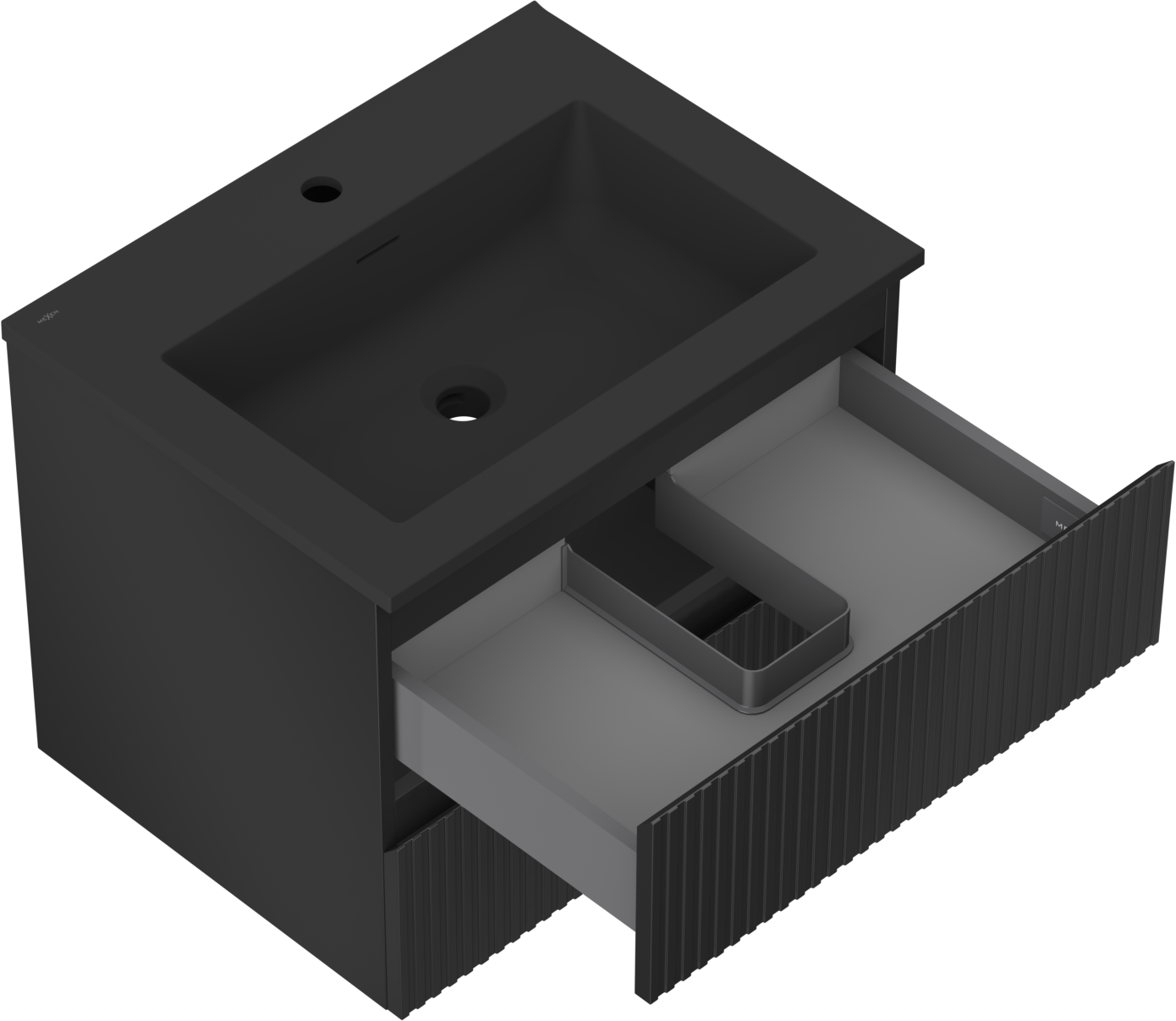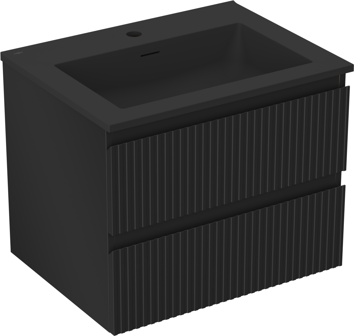 Mexen Rivel vonios spintelė 60 cm su Otis kriaukle, 2 stalčiai, grioveliai, juoda matinė - 91A20-06047-2-BFF71-W18M71