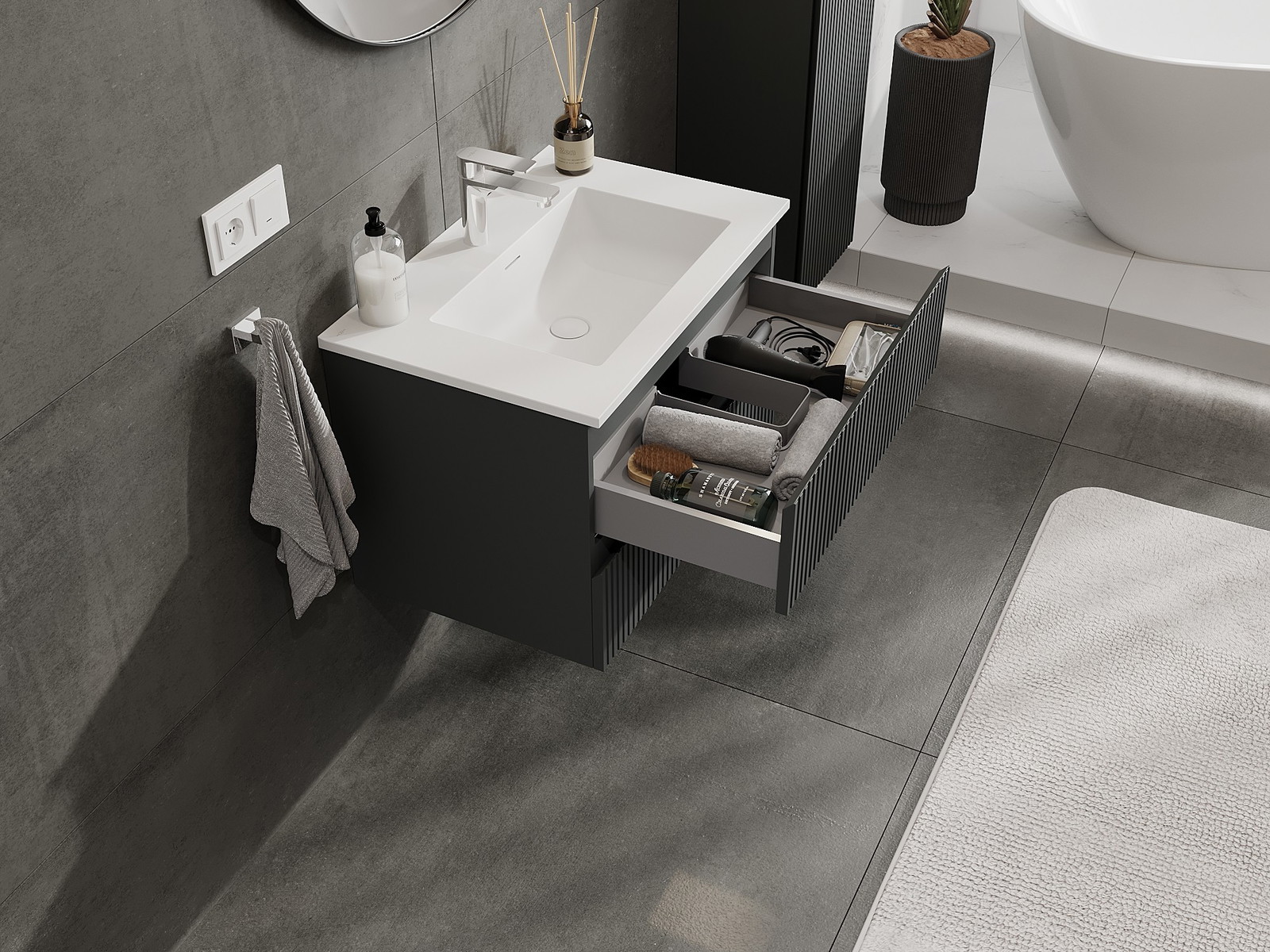 Spintelės korpusas pristatomas visiškai surinktas, tai reiškia maksimalų patogumą ir laiko taupymą. Jums nereikia praleisti valandų surenkant baldą – tiesiog sumontuokite jį pasirinktoje vietoje vonios kambaryje. Tai idealus sprendimas žmonėms, kurie vertina greitą montavimą ir momentinį efektą.