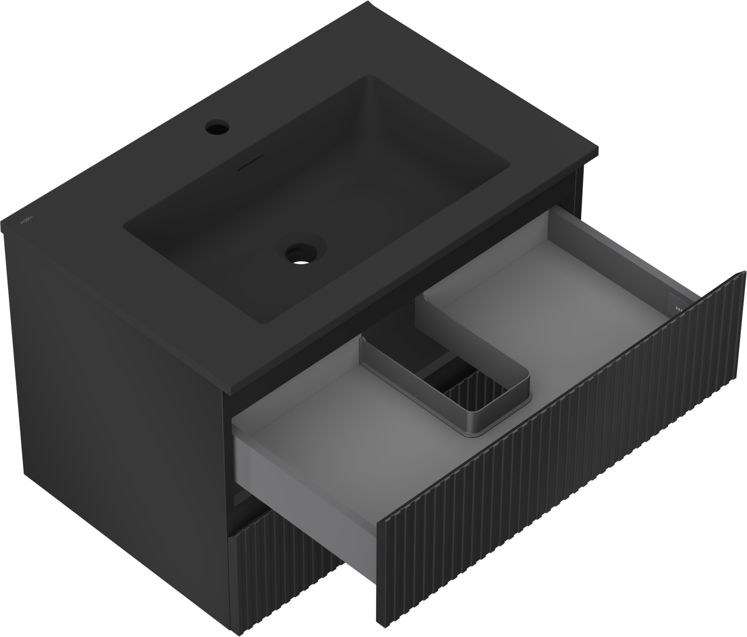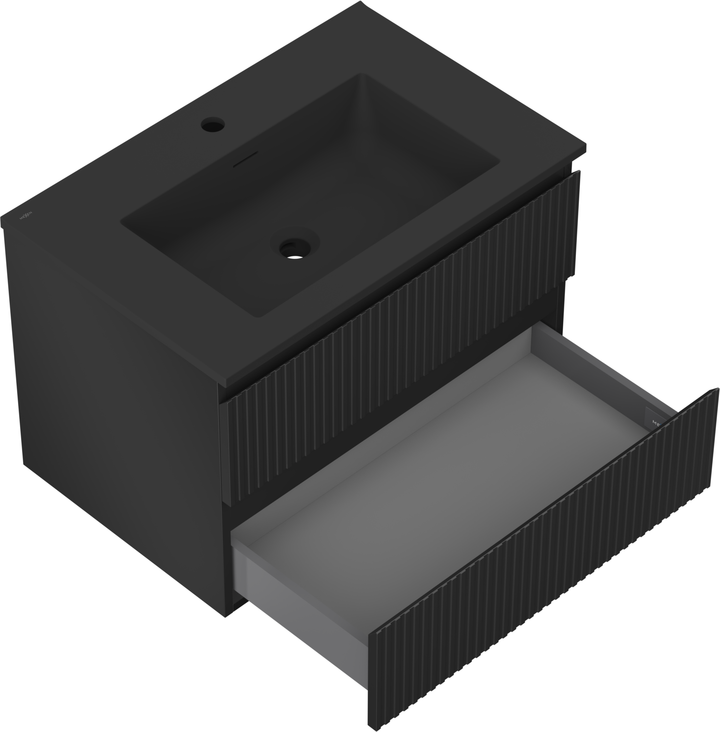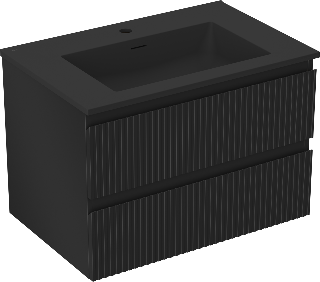 Mexen Rivel vonios spintelė 70 cm su Otis kriaukle, 2 stalčiai, raižyta, juoda matinė - 91A20-07047-2-BFF71-W18M71