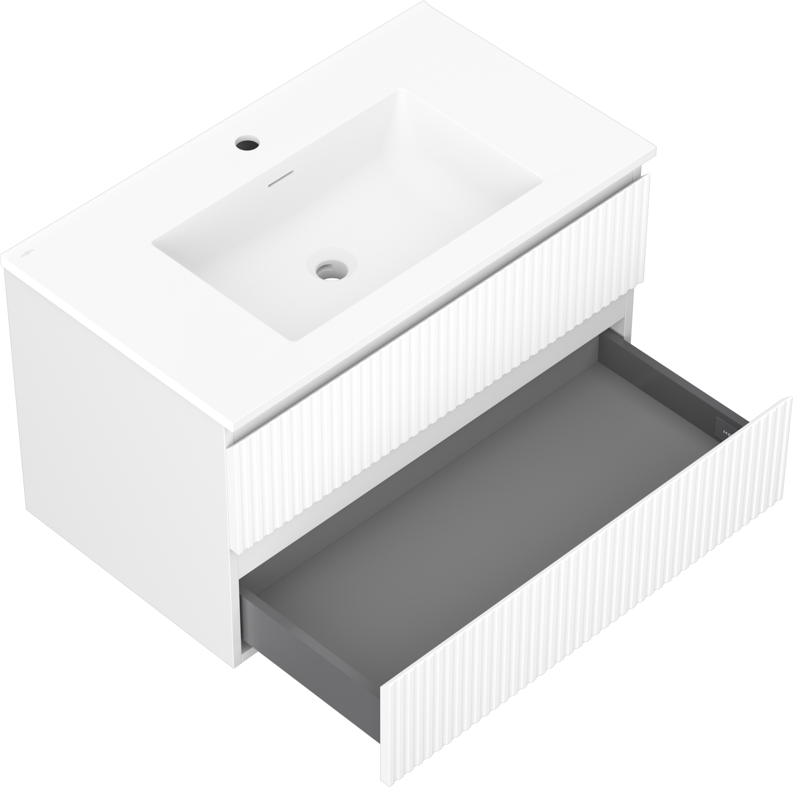 Mexen Rivel vonios kambario spintelė 80 cm su praustuvu Otis, 2 stalčiai, gofruota, balta matinė - 91A20-08047-2-BFF01-W18M01