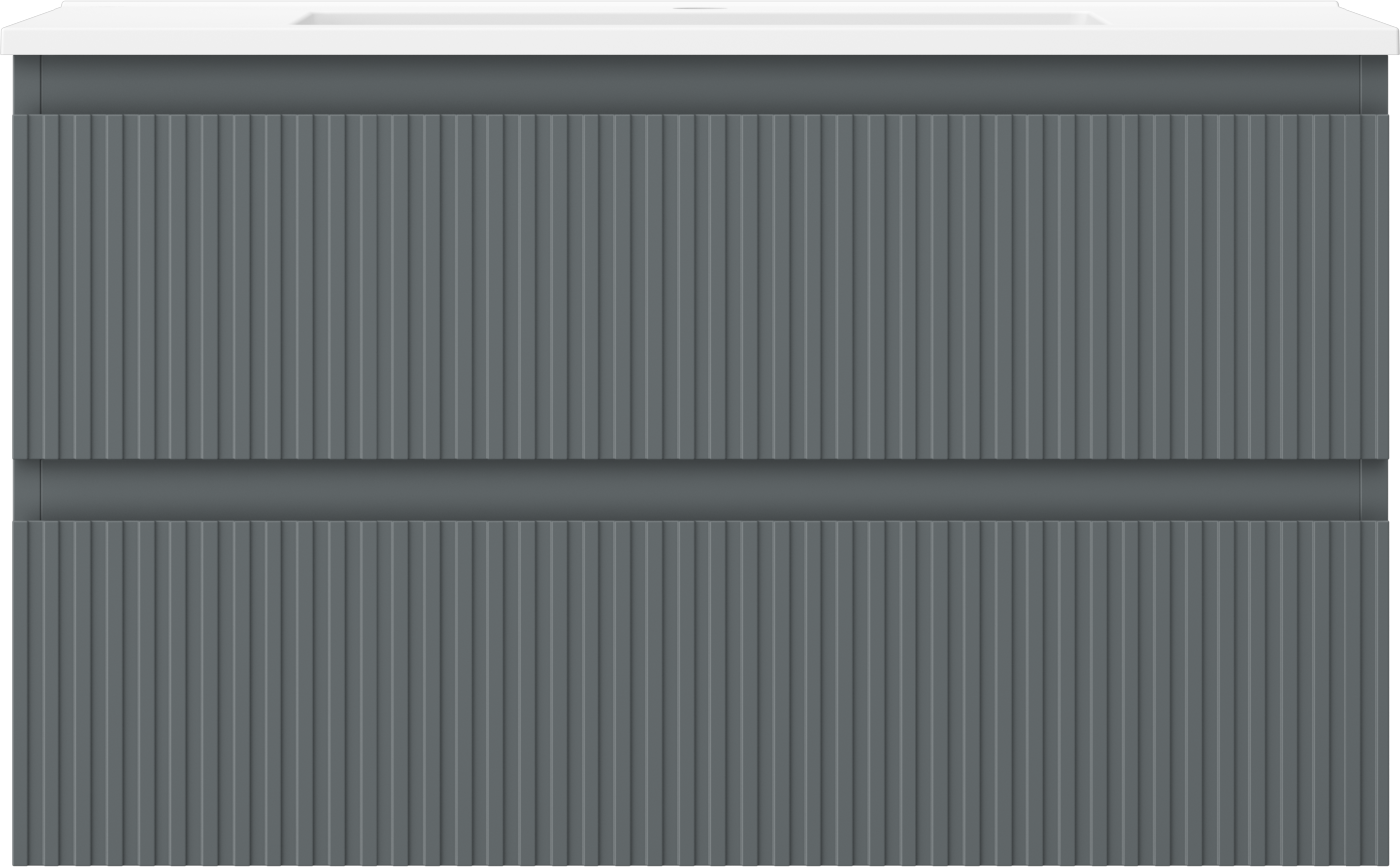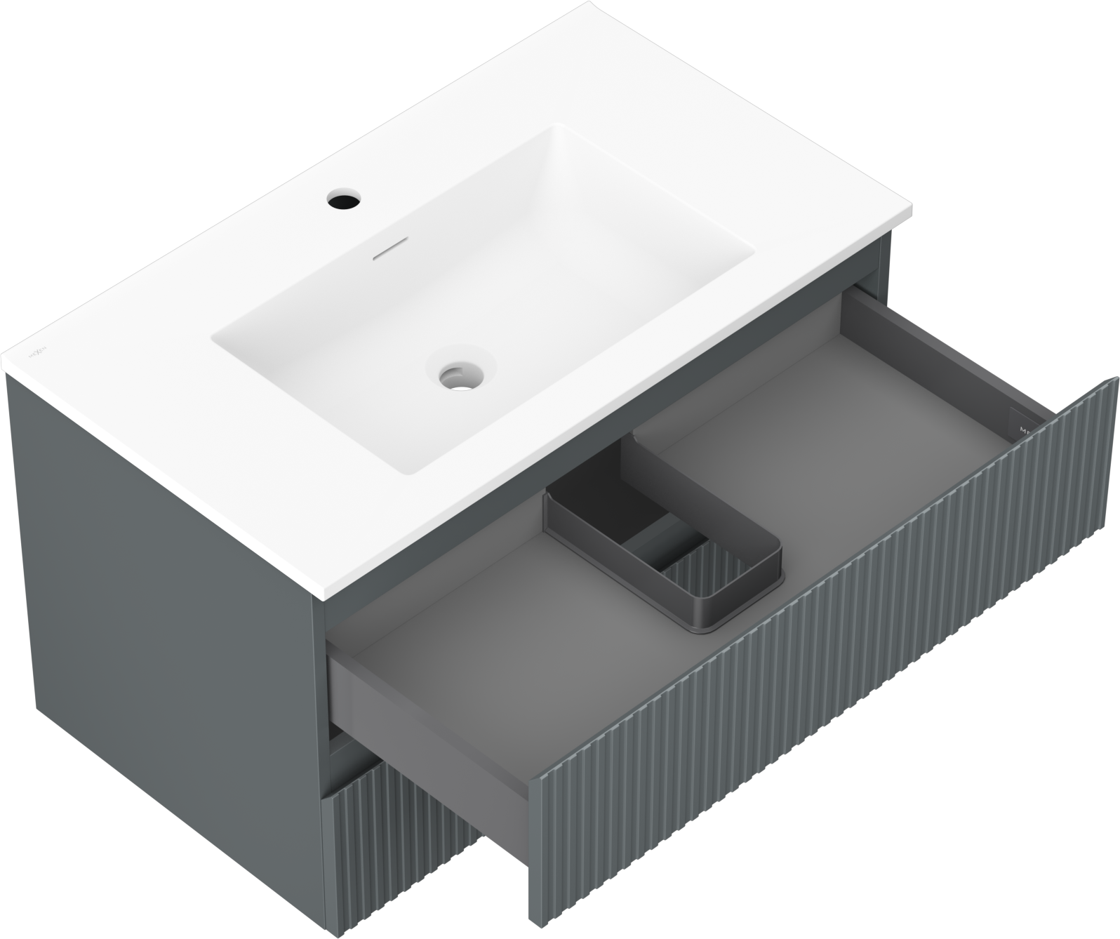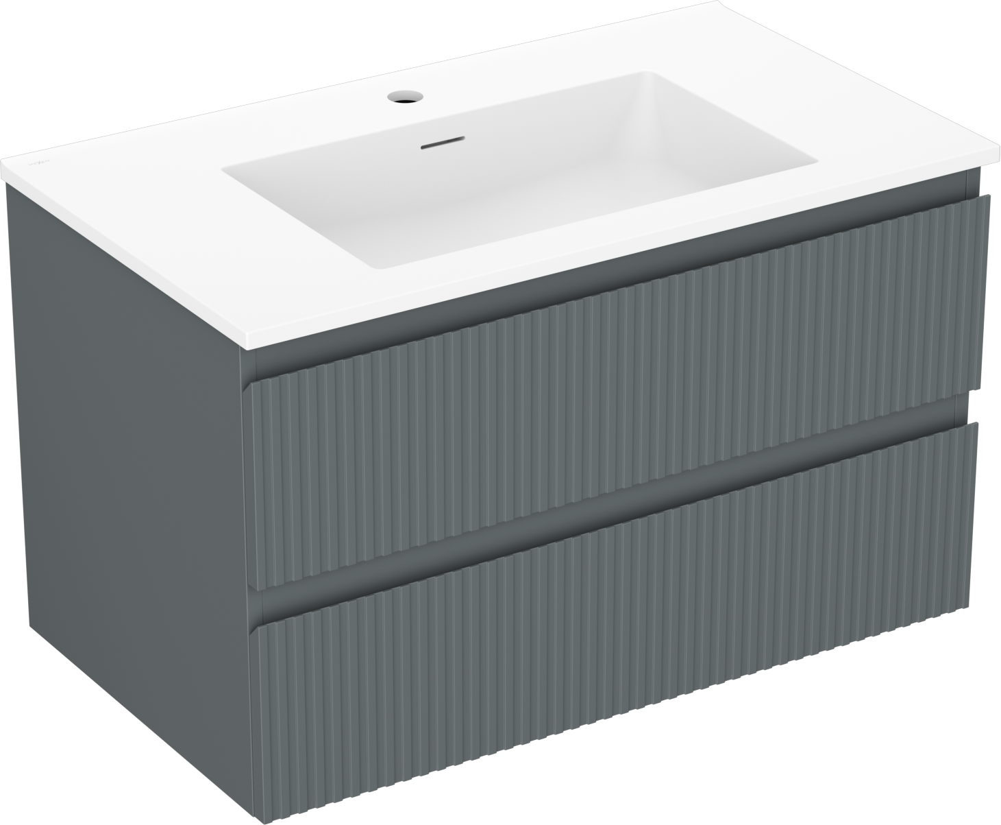 Mexen Rivel vonios spintelė 80 cm su kriaukle Otis, 2 stalčiai, grioveliuota, grafito matinė/balta matinė -