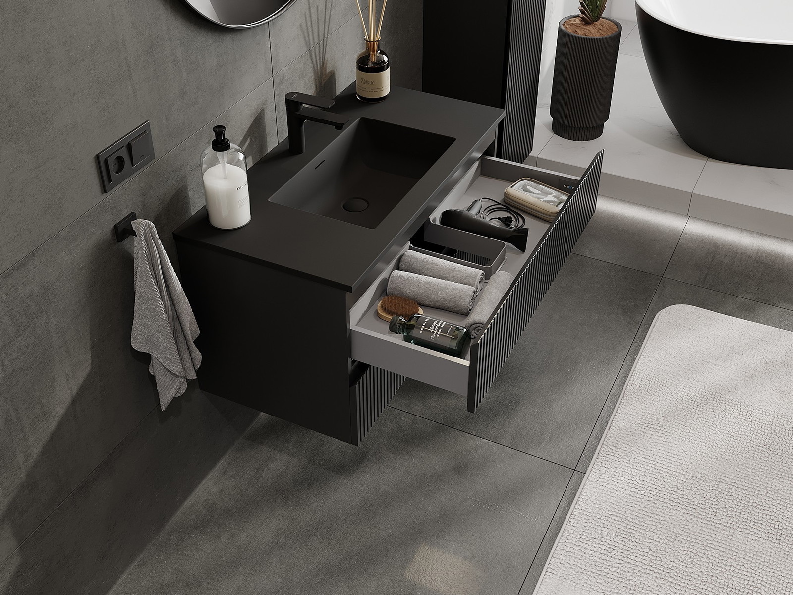 Mūsų moduliniai vonios baldai gali būti derinami tarpusavyje įvairiomis spalvų konfigūracijomis, leidžiant visiškai pritaikyti pagal asmeninius poreikius. Galima pasirinkti tiek atskirų elementų išvaizdą, tiek funkcijas, kas leidžia baldus pritaikyti pagal savo stiliaus ir naudojimo preferencijas.