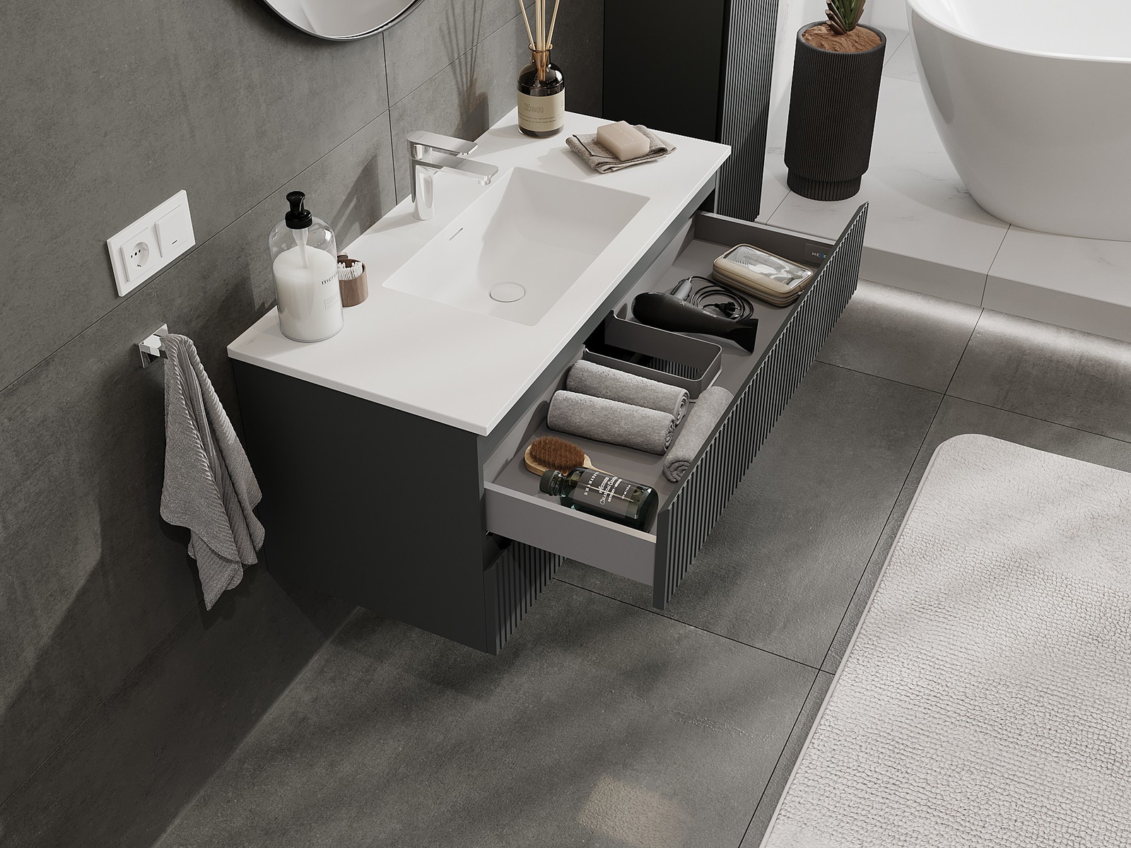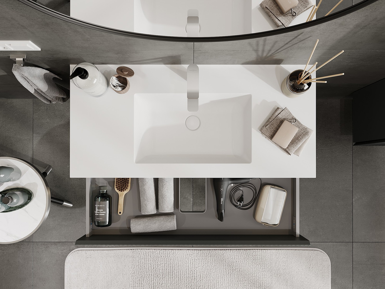 Mūsų moduliniai vonios baldai gali būti derinami tarpusavyje įvairiomis spalvų konfigūracijomis, leidžiant visiškai pritaikyti pagal asmeninius poreikius. Galima pasirinkti tiek atskirų elementų išvaizdą, tiek funkcijas, kas leidžia baldus pritaikyti pagal savo stiliaus ir naudojimo preferencijas.
