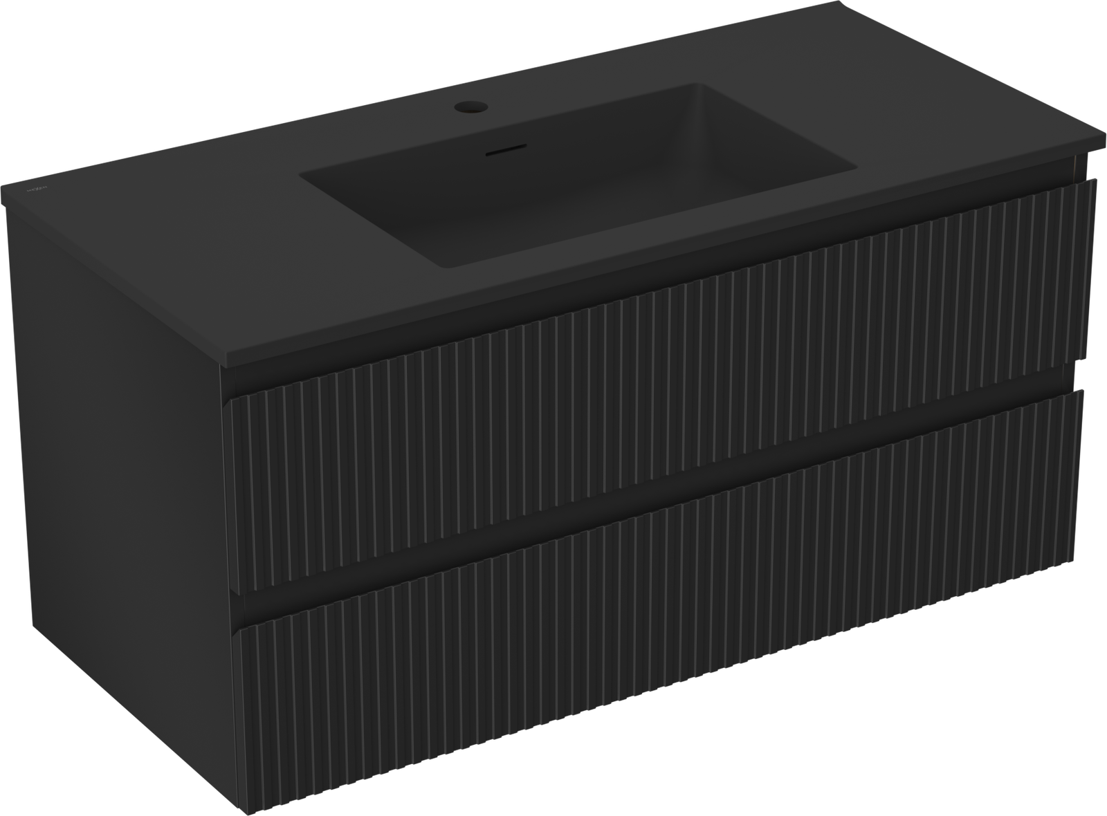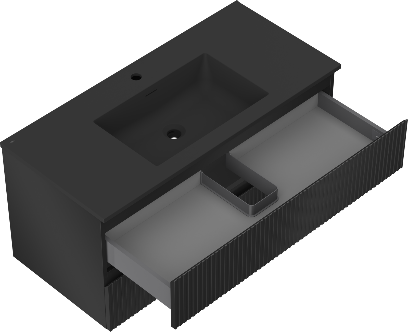 Mexen Rivel vonios kambario spintelė 100 cm su Otis praustuvu, 2 stalčiai, juoda matinė - 91A20-10047-2-BFF71-W18M71