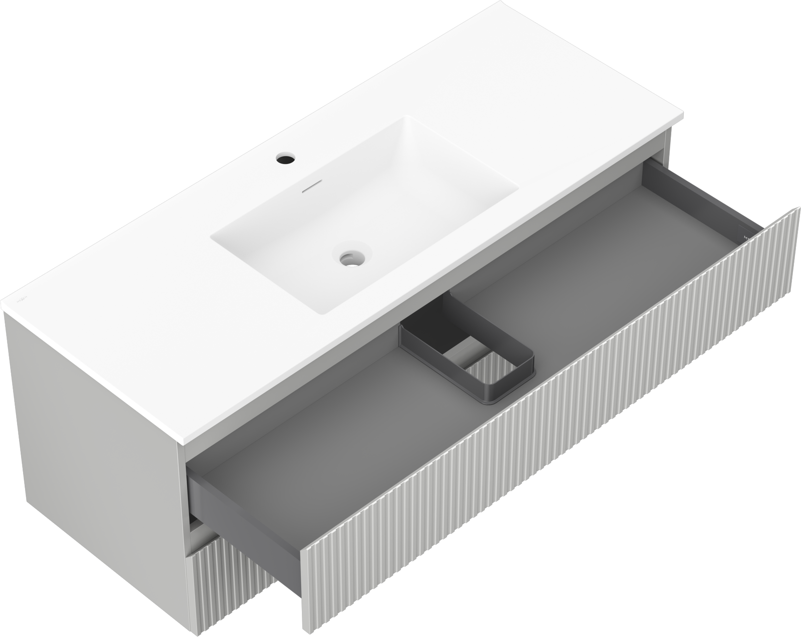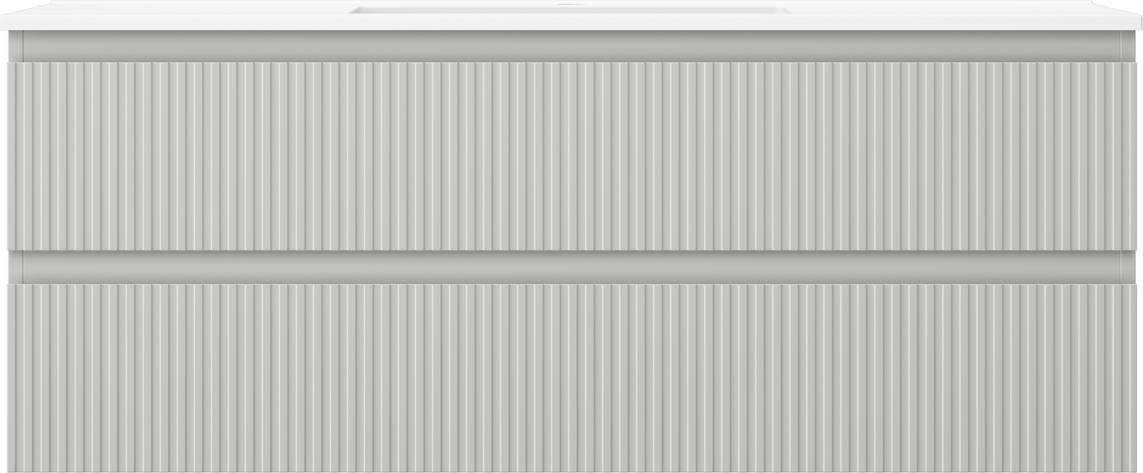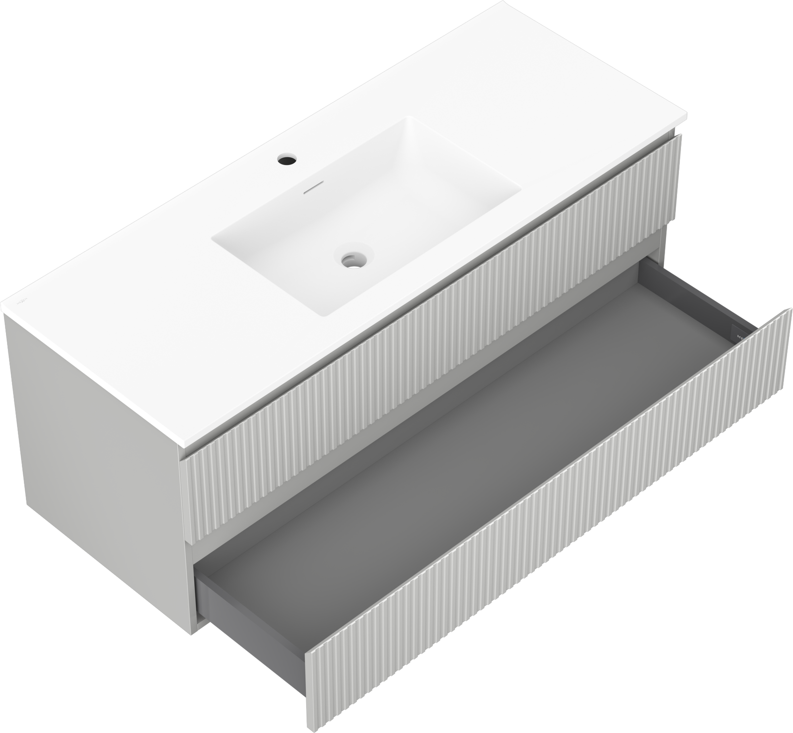 Mexen Rivel vonios spintelė 120 cm su praustuvu Otis, 2 stalčiai, rifliuota, pilka matinė/balta matinė -