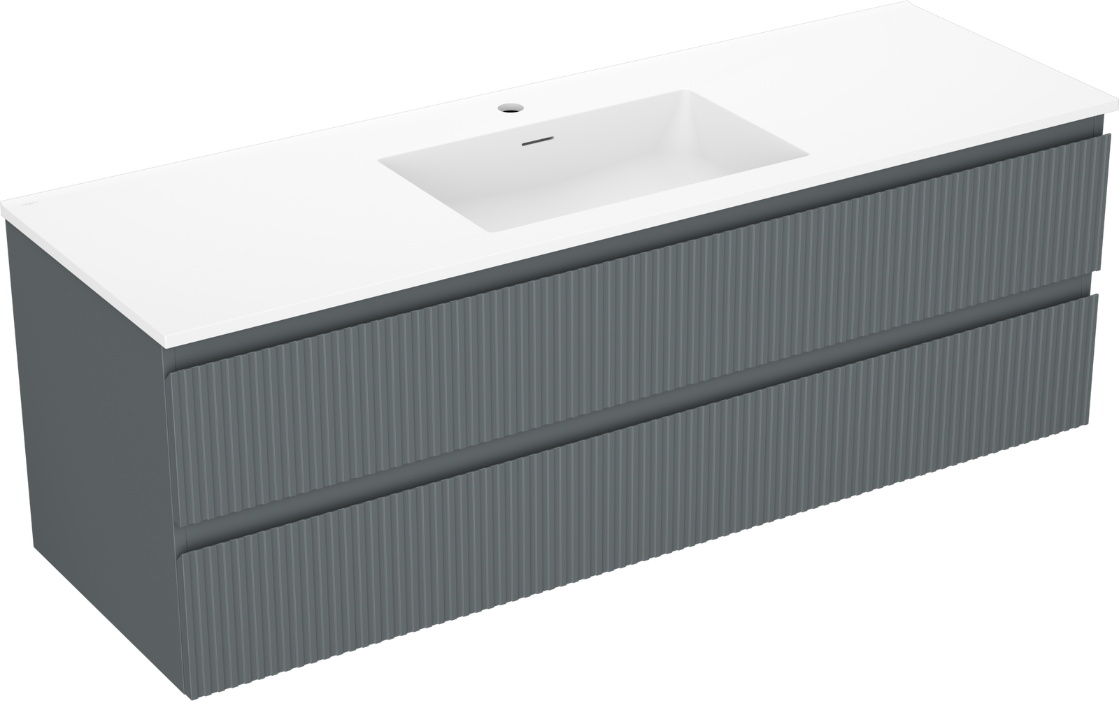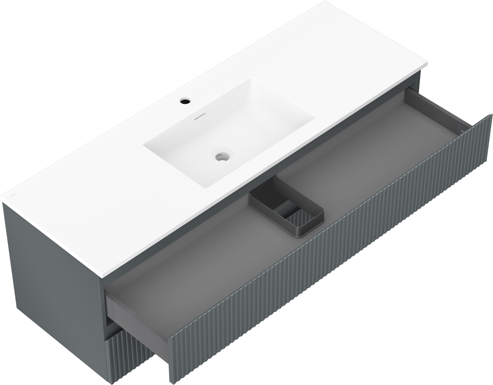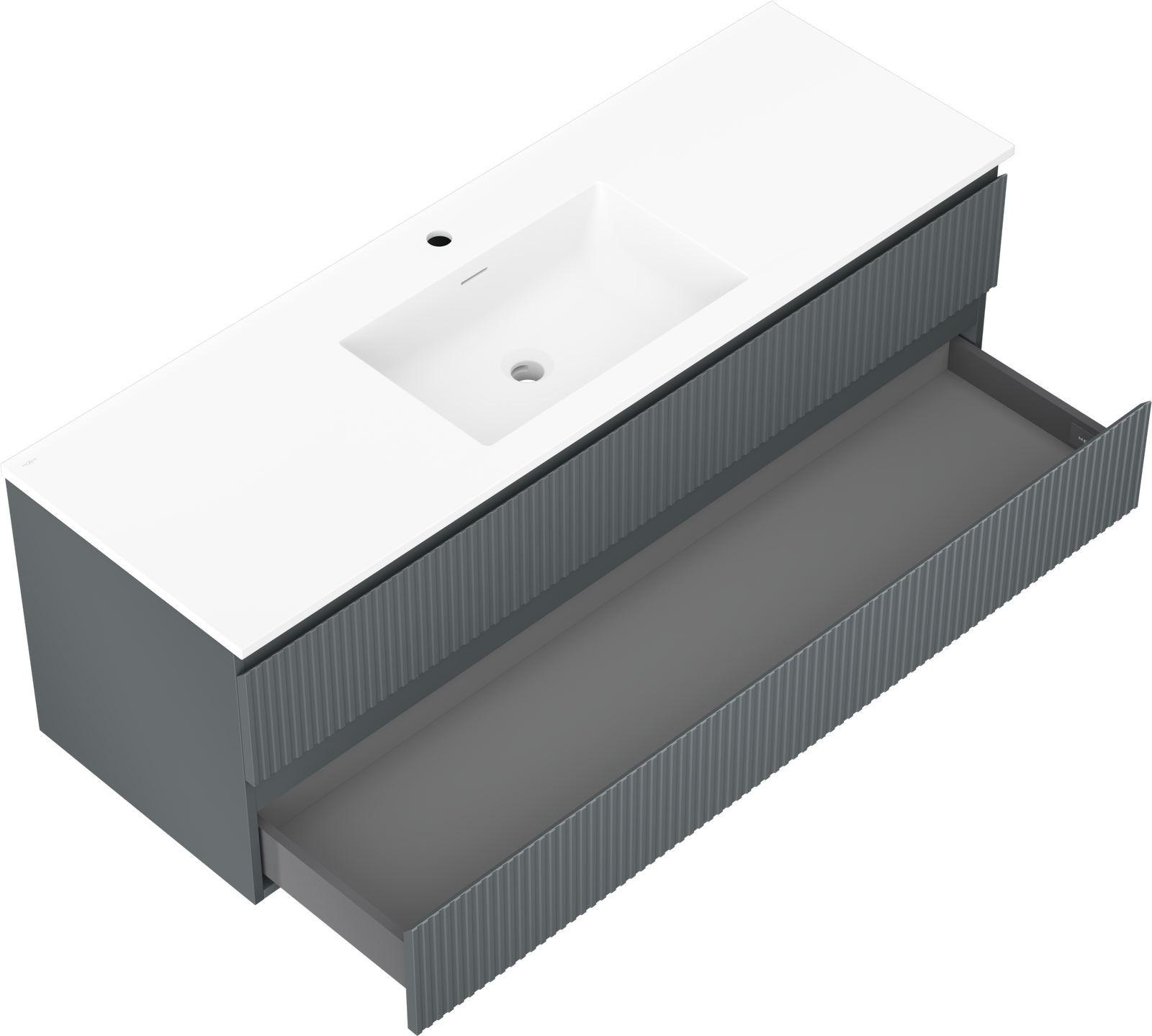 Mexen Rivel vonios spintelė 140 cm su praustuvu Otis, 2 stalčiai, su grioveliais, grafito matinė/balta matinė -