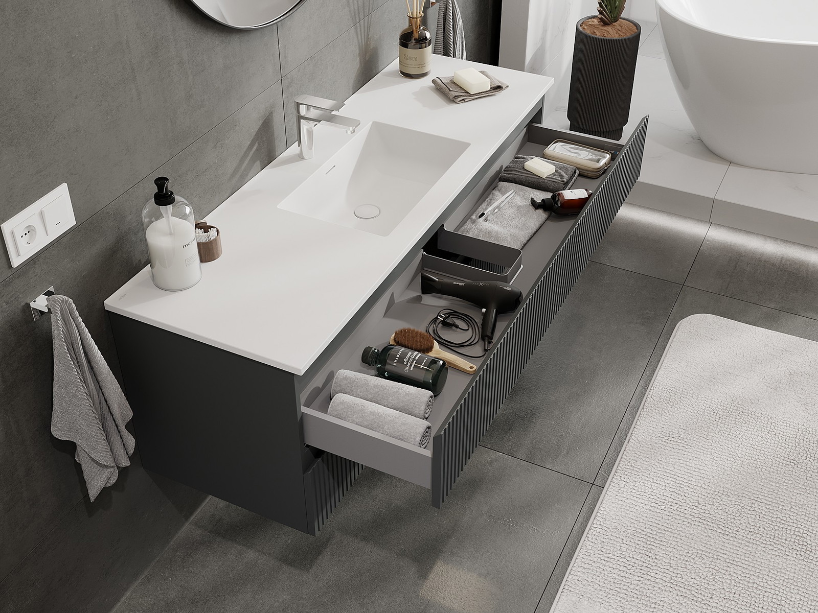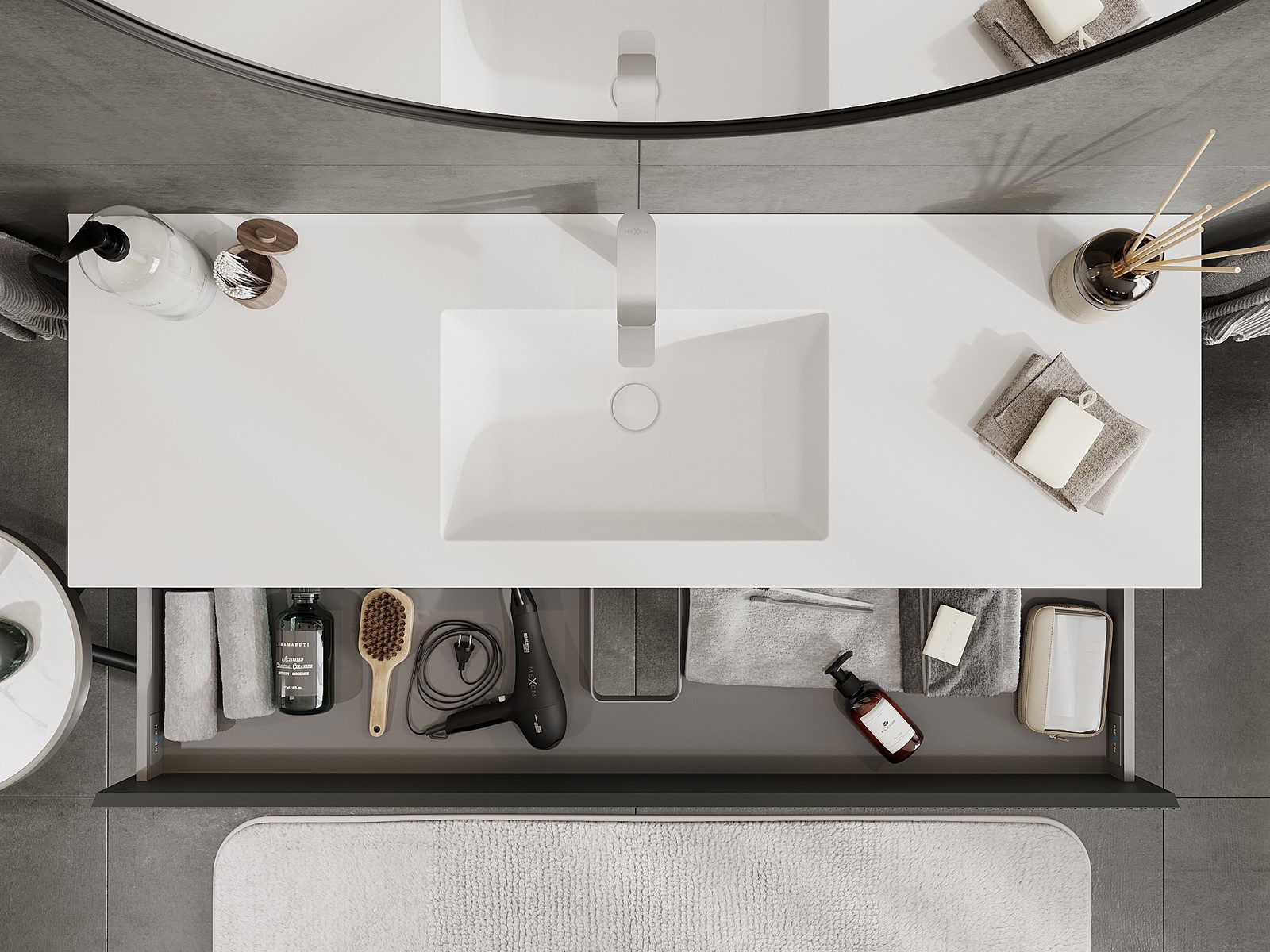 Mūsų moduliniai vonios baldai gali būti derinami tarpusavyje įvairiomis spalvų konfigūracijomis, leidžiant visiškai pritaikyti pagal asmeninius poreikius. Galima pasirinkti tiek atskirų elementų išvaizdą, tiek funkcijas, kas leidžia baldus pritaikyti pagal savo stiliaus ir naudojimo preferencijas.