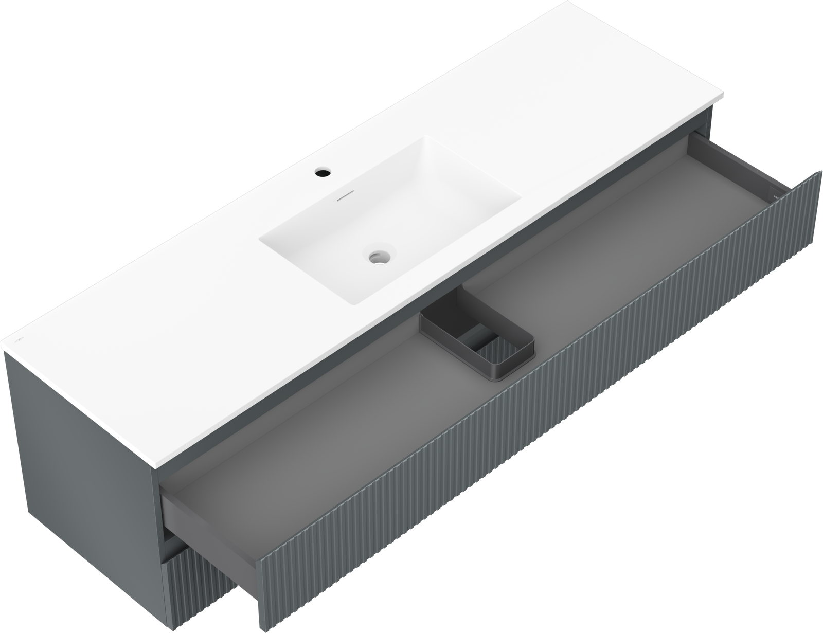 Mexen Rivel vonios spintelė 160 cm su praustuvu Otis, 2 stalčiai, grioveliais, grafito matinė/balta matinė -