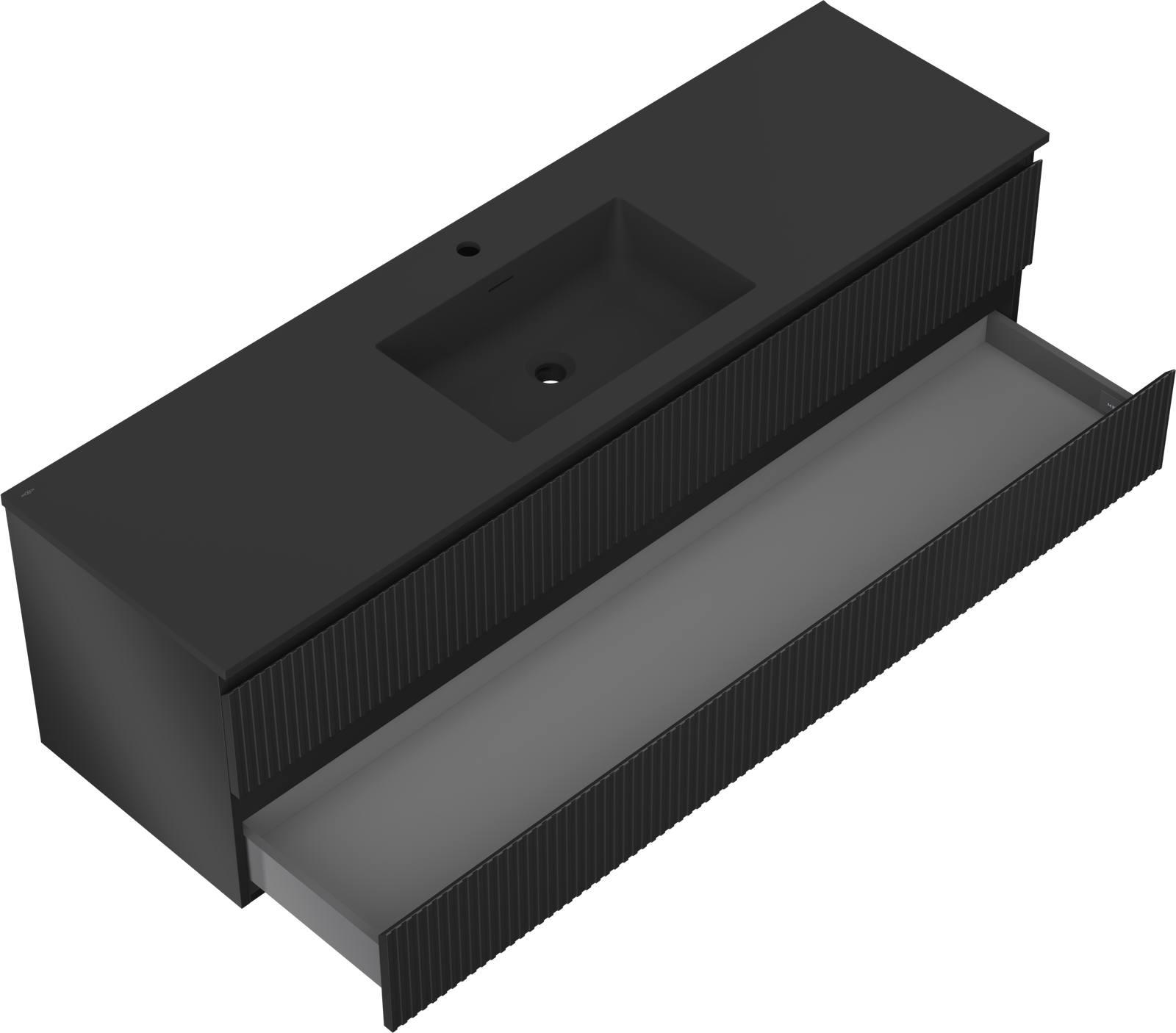 Mexen Rivel vonios spintelė 160 cm su Otis praustuvu, 2 stalčiai, griovelinė, juoda matinė - 91A20-16047-2-BFF71-W18M71