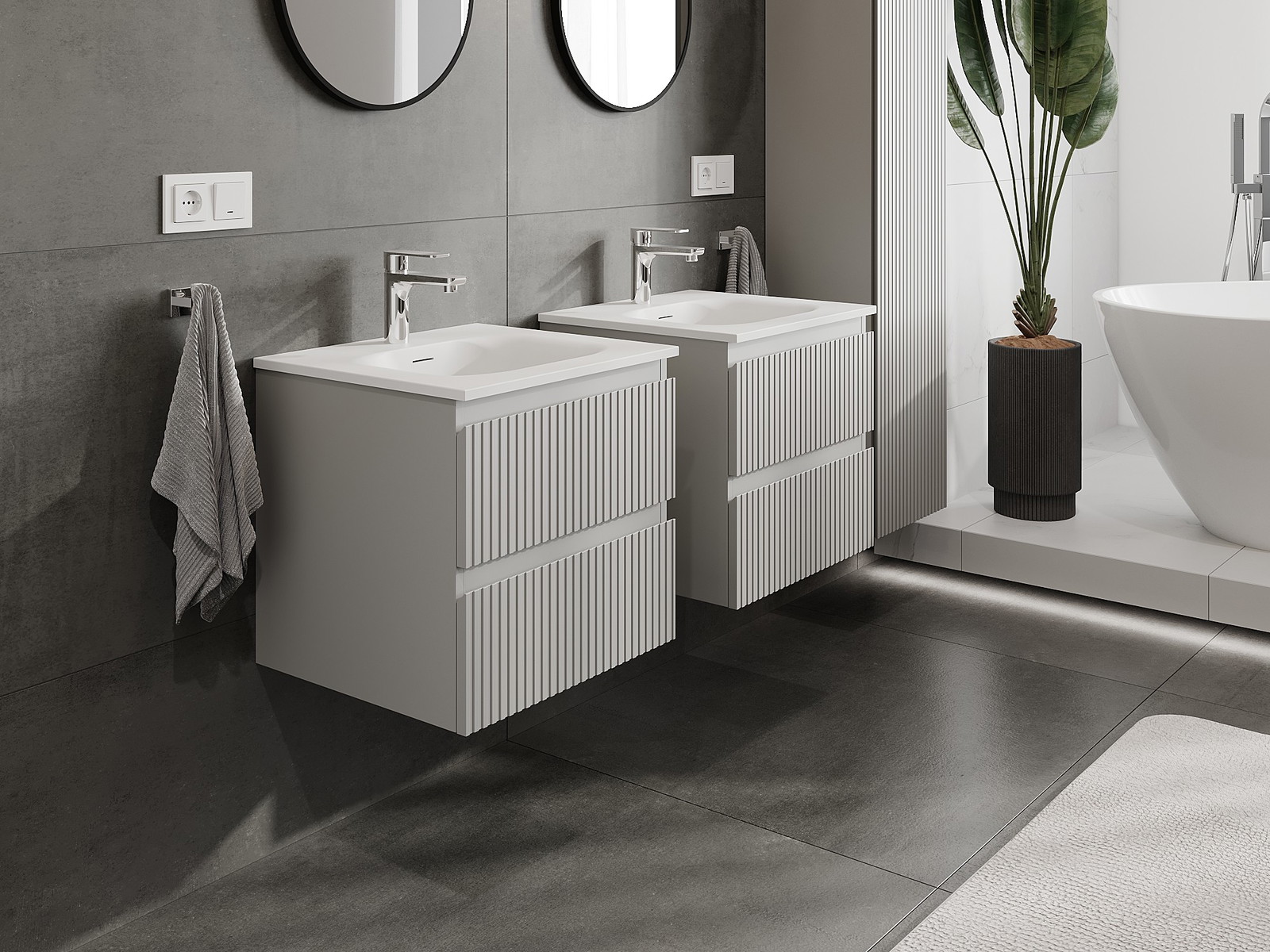 Mūsų moduliniai vonios baldai gali būti derinami tarpusavyje įvairiomis spalvų konfigūracijomis, leidžiant visiškai pritaikyti pagal asmeninius poreikius. Galima pasirinkti tiek atskirų elementų išvaizdą, tiek funkcijas, kas leidžia baldus pritaikyti pagal savo stiliaus ir naudojimo preferencijas.
