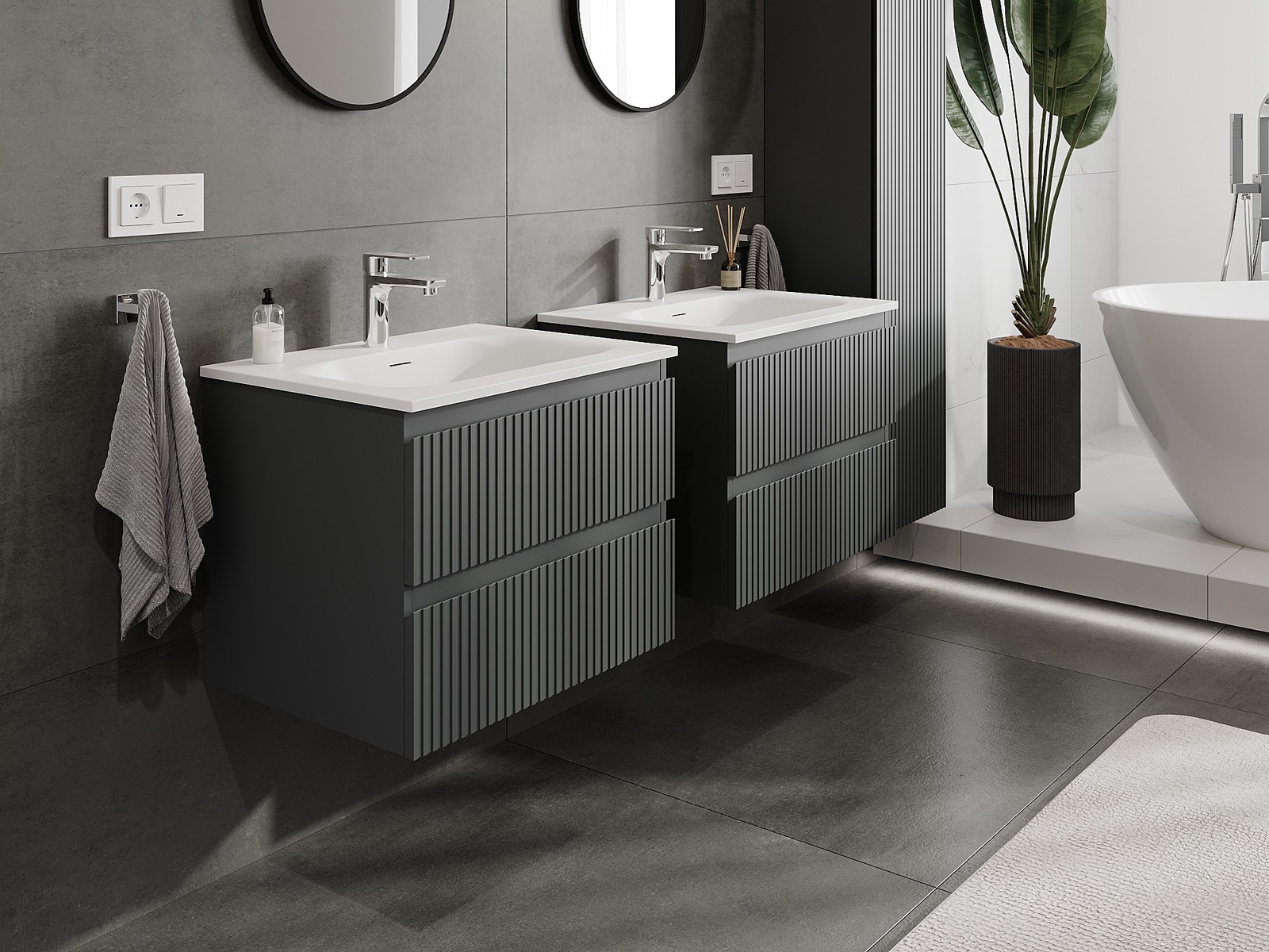 Mūsų moduliniai vonios baldai gali būti derinami tarpusavyje įvairiomis spalvų konfigūracijomis, leidžiant visiškai pritaikyti pagal asmeninius poreikius. Galima pasirinkti tiek atskirų elementų išvaizdą, tiek funkcijas, kas leidžia baldus pritaikyti pagal savo stiliaus ir naudojimo preferencijas.