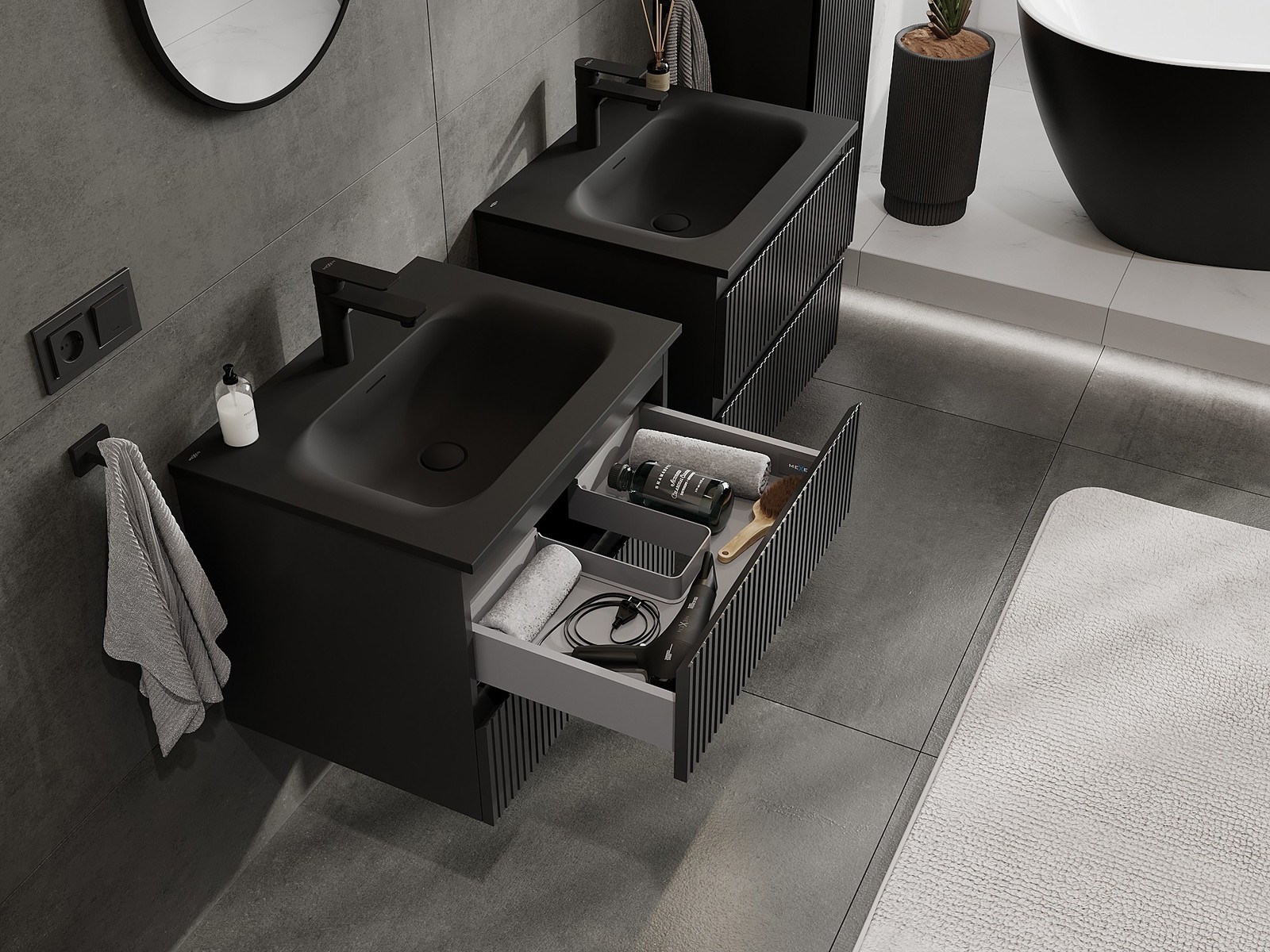Spintelės korpusas pristatomas visiškai surinktas, tai reiškia maksimalų patogumą ir laiko taupymą. Jums nereikia praleisti valandų surenkant baldą – tiesiog sumontuokite jį pasirinktoje vietoje vonios kambaryje. Tai idealus sprendimas žmonėms, kurie vertina greitą montavimą ir momentinį efektą.