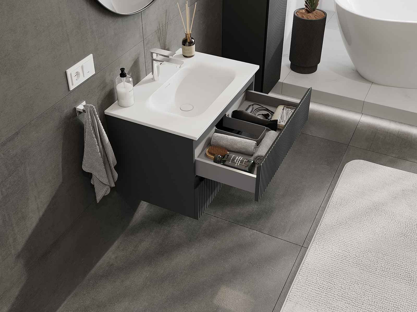 Spintelės korpusas pristatomas visiškai surinktas, tai reiškia maksimalų patogumą ir laiko taupymą. Jums nereikia praleisti valandų surenkant baldą – tiesiog sumontuokite jį pasirinktoje vietoje vonios kambaryje. Tai idealus sprendimas žmonėms, kurie vertina greitą montavimą ir momentinį efektą.
