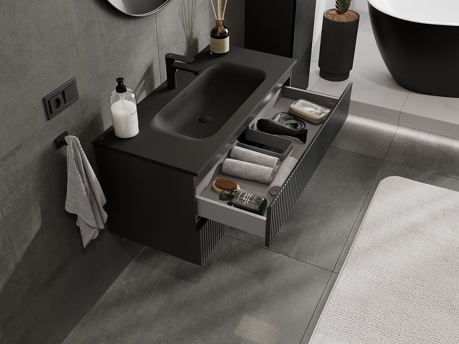 Mūsų moduliniai vonios baldai gali būti derinami tarpusavyje įvairiomis spalvų konfigūracijomis, leidžiant visiškai pritaikyti pagal asmeninius poreikius. Galima pasirinkti tiek atskirų elementų išvaizdą, tiek funkcijas, kas leidžia baldus pritaikyti pagal savo stiliaus ir naudojimo preferencijas.