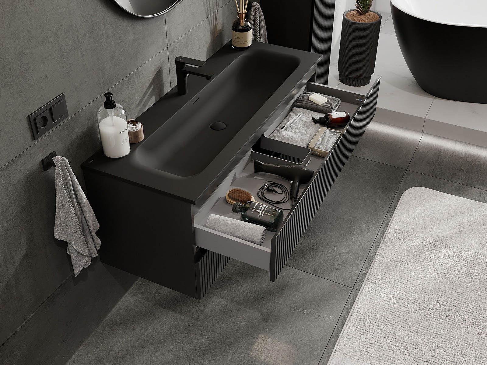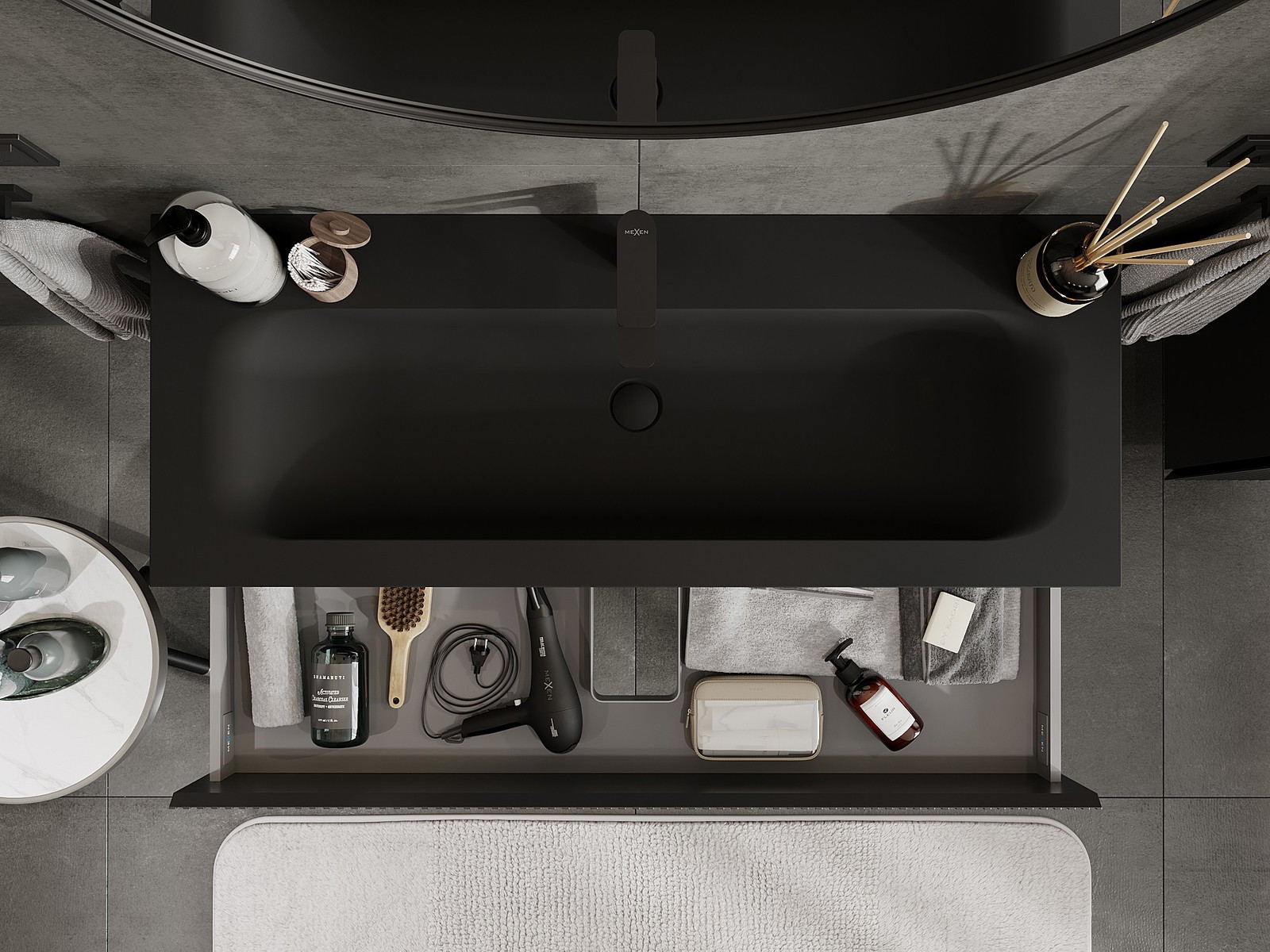 Mūsų moduliniai vonios baldai gali būti derinami tarpusavyje įvairiomis spalvų konfigūracijomis, leidžiant visiškai pritaikyti pagal asmeninius poreikius. Galima pasirinkti tiek atskirų elementų išvaizdą, tiek funkcijas, kas leidžia baldus pritaikyti pagal savo stiliaus ir naudojimo preferencijas.