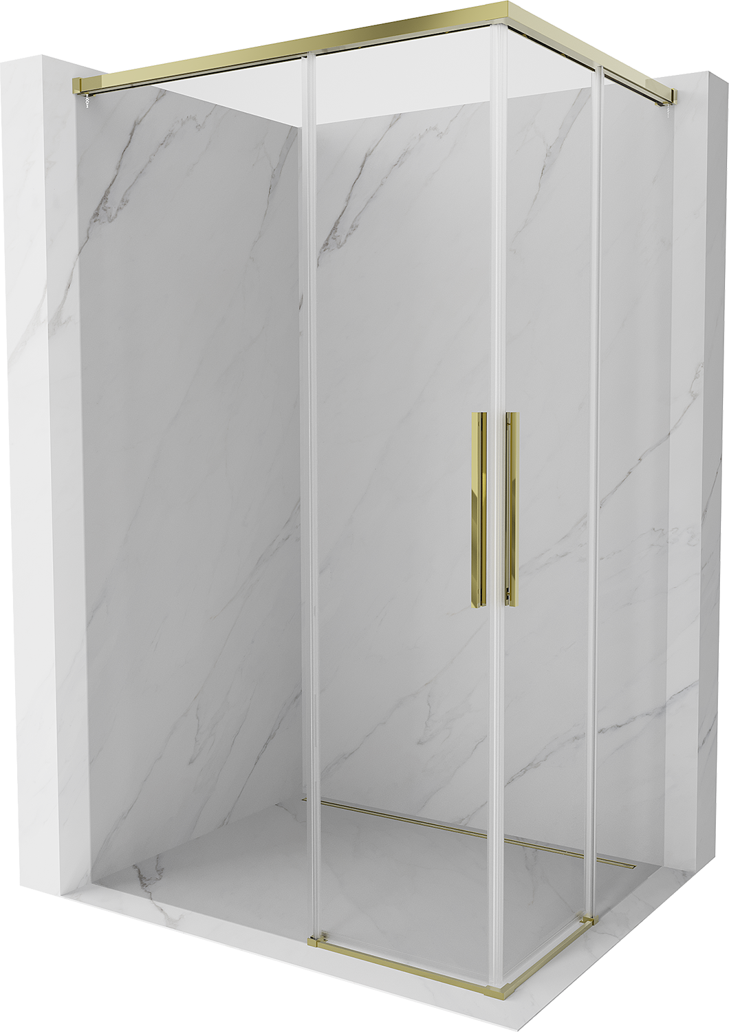 Mexen Rox Dviguba stumdomų durų dušo kabina 120 x 85 cm, skaidri, auksinė - 8C2D-120-085-50-00